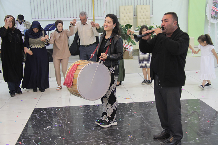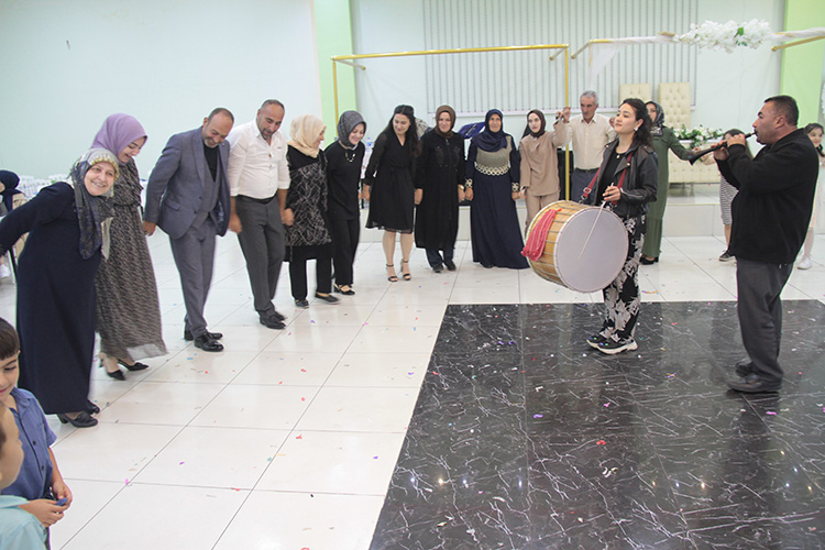 Evde fazla pratik yapmayan baba-kız, sahneye çıktıklarında adeta ezbere çalıyor. Ekipmanlarını kontrol ettikten sonra sahnede ritmi konuşturan ikili, düğün sahiplerinin ve konukların enerjisine göre performanslarını şekillendiriyor.