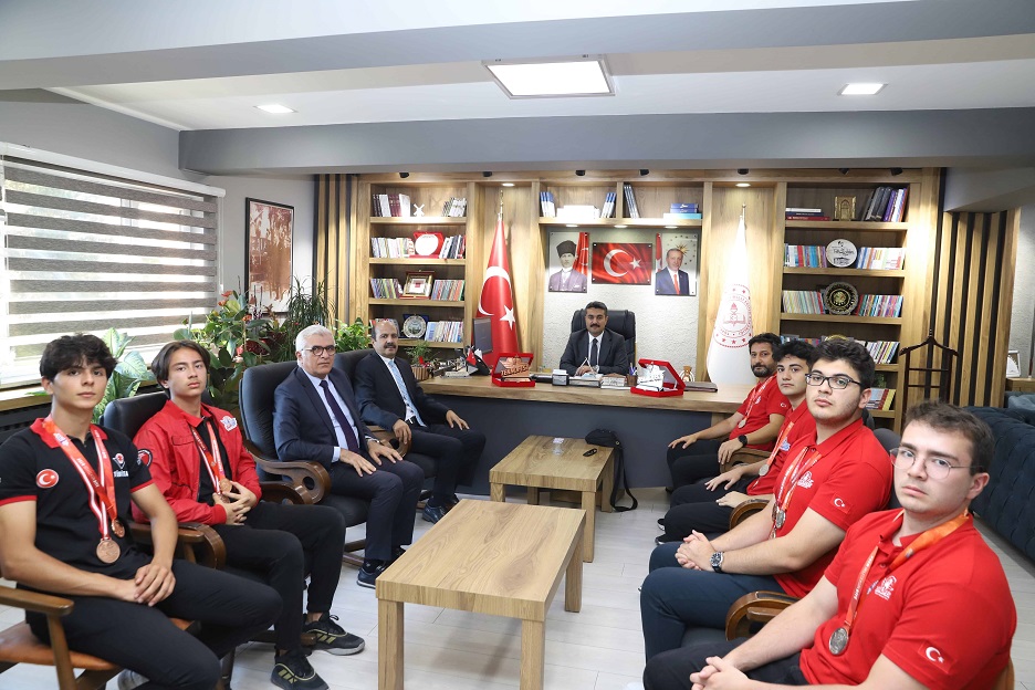TEKNOFEST 2025 yarışmalarında gösterdikleri performansla Türkiye genelinde dereceye giren Sivaslı öğrenciler, hem danışman öğretmenleri hem de il eğitim yöneticileriyle birlikte büyük takdir topladı. Nimbus58 takımı, başarılarını taçlandırmak adına İl Millî Eğitim Müdürü Fatih Erdoğan’ı makamında ziyaret etti.