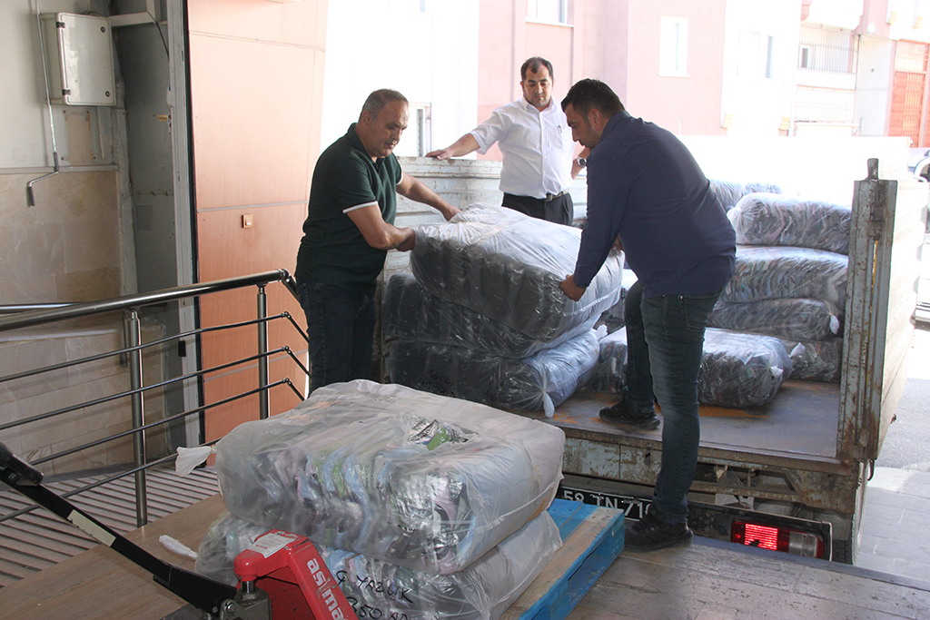 5150 adet sweet ve tişört, iş adamı Erdoğan Bozatlı"nın Sivas"ta faaliyet gösteren tekstil fabrikasından teslim alındı. Hayat Ağacı Derneği"ne bağışlanan çocuk kıyafetleri, 6-14 yaş grubunu kapsıyor.