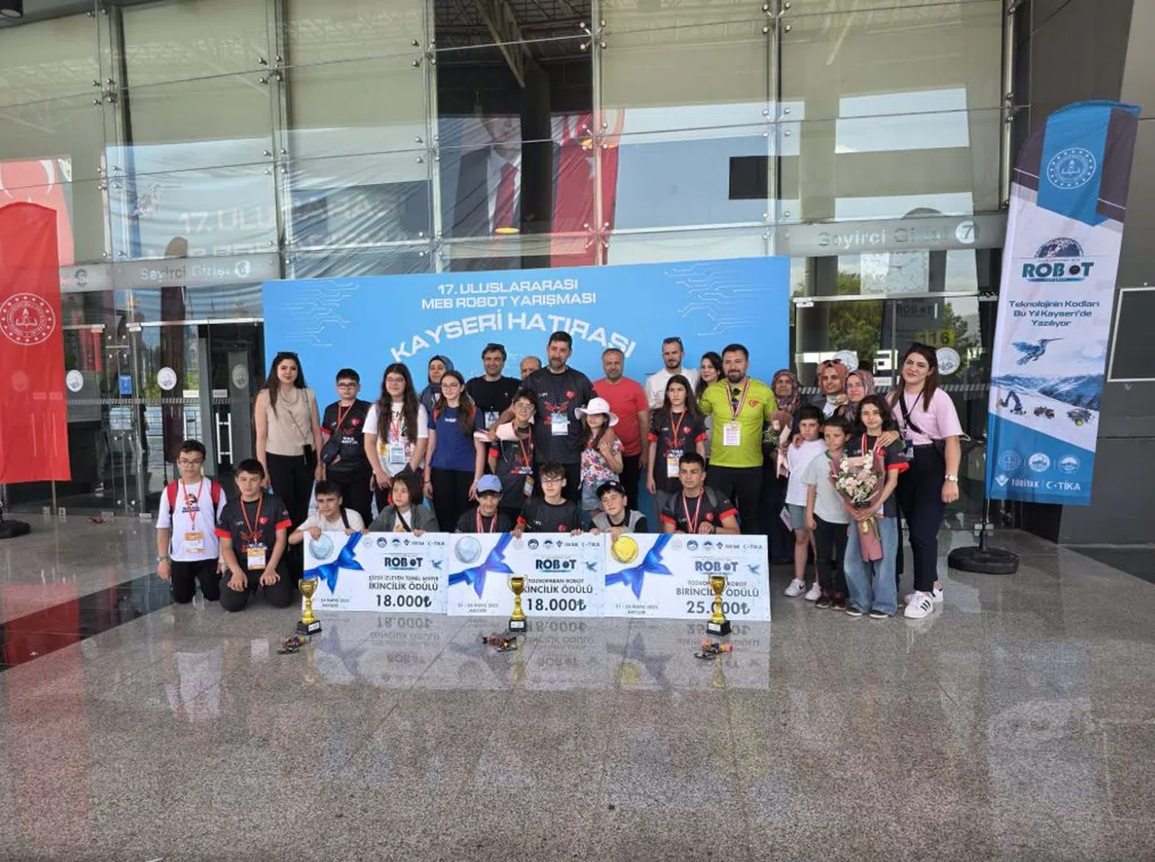 Sivaslı öğrenciler, Millî Eğitim Bakanlığı (MEB) tarafından "Köklerden Geleceğe, Eğitim, Teknoloji, Üretim" temasıyla Kayseri'de düzenlenen 17. Uluslararası MEB Robot Yarışması'nda elde ettikleri birbirinden önemli derecelerle göğsümüzü kabarttı. Yarışmanın ödül töreni, Millî Eğitim Bakanı Sayın Yusuf Tekin'in katılımıyla gerçekleştirilirken, Sivaslı genç mucitler başarılarıyla törene damga vurdu.