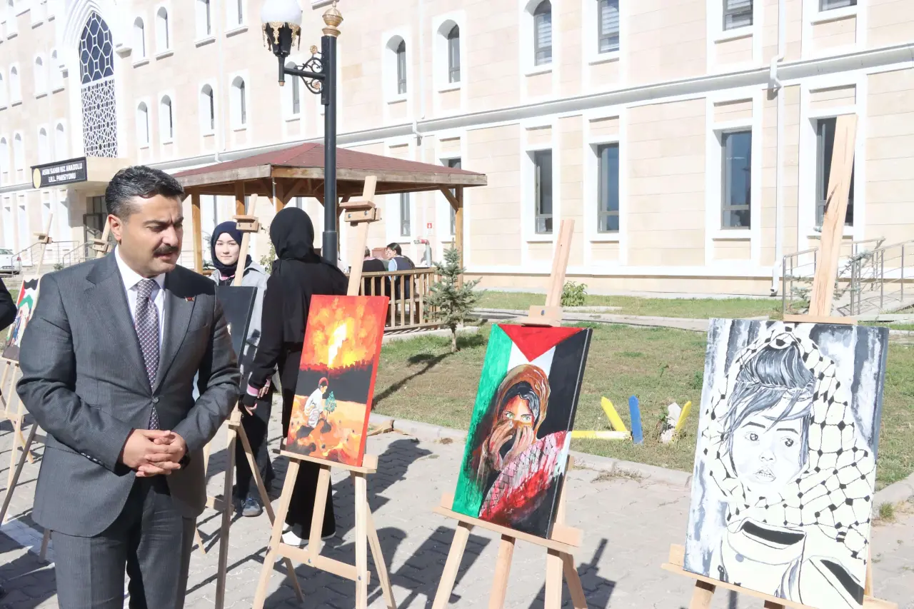 Program kapsamında öğrenciler, Filistin temalı resim sergisi hazırlayarak duygularını sanatla ifade etti. Sergide, özgürlük ve barış temalarını yansıtan eserler dikkat çekti.