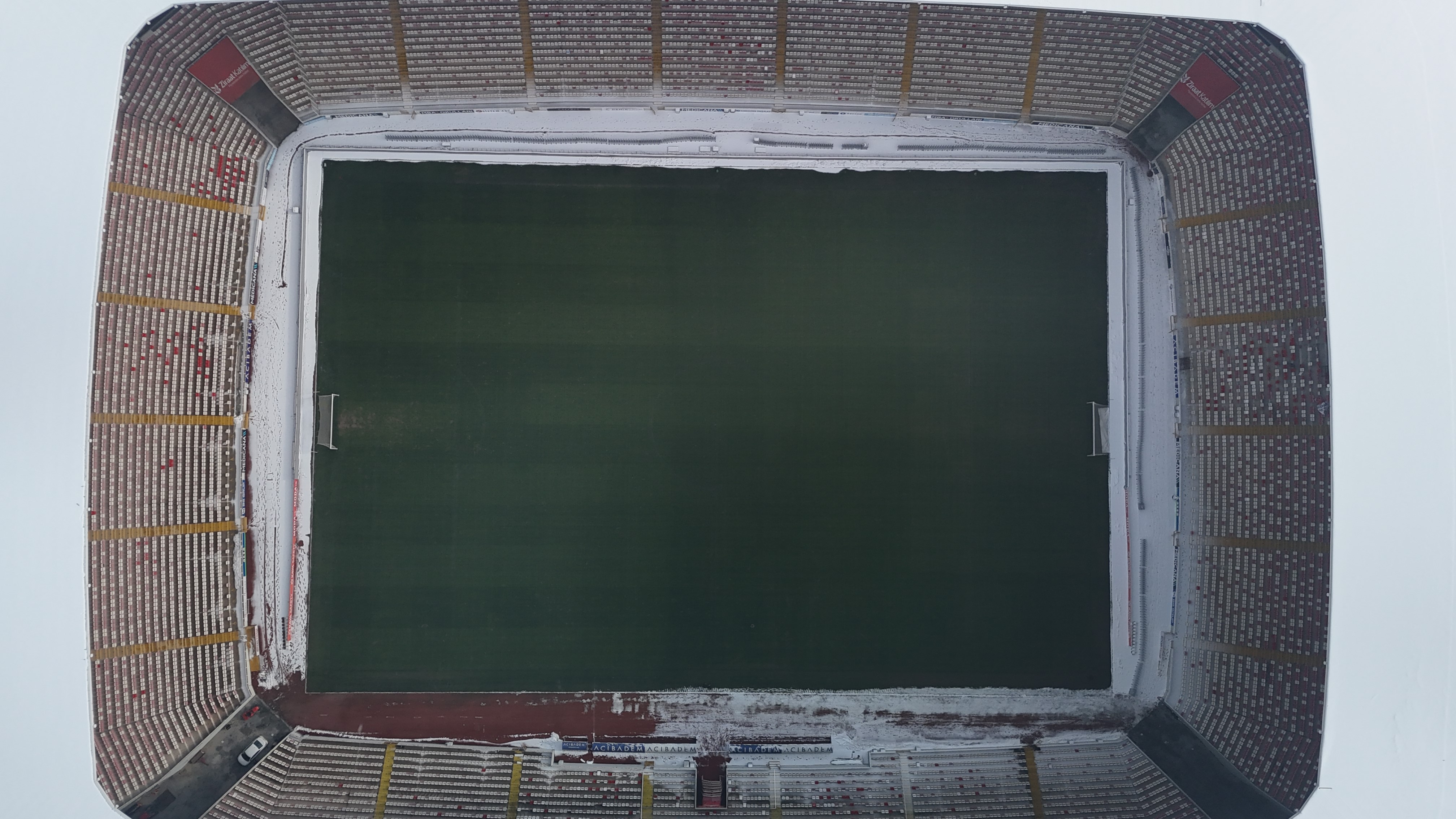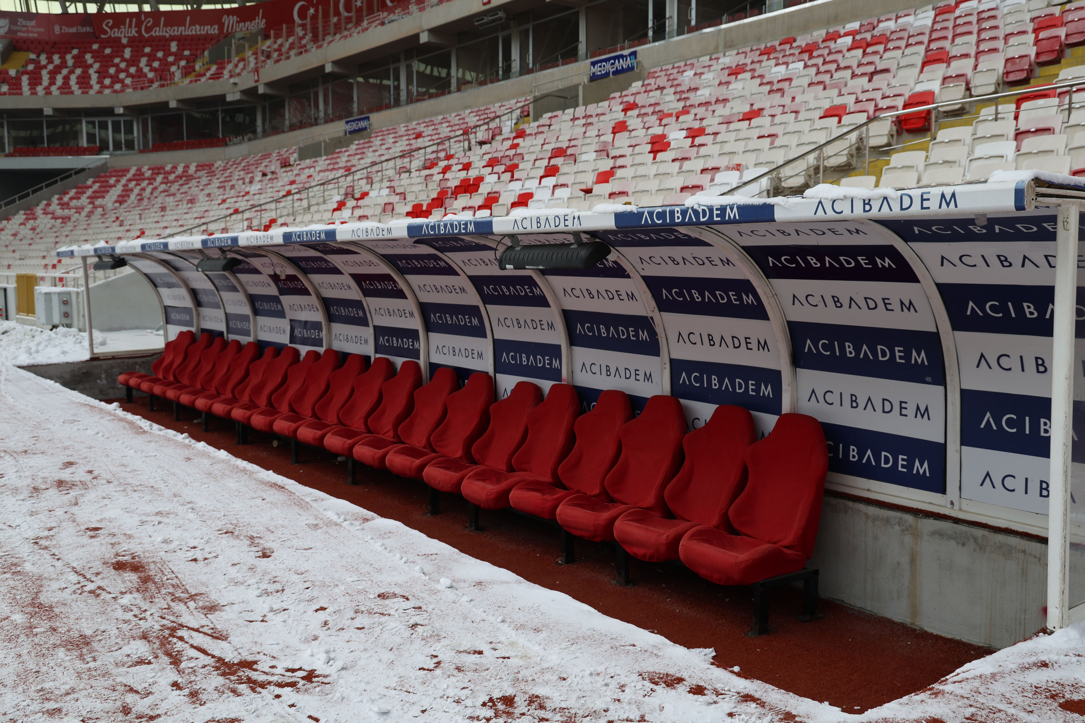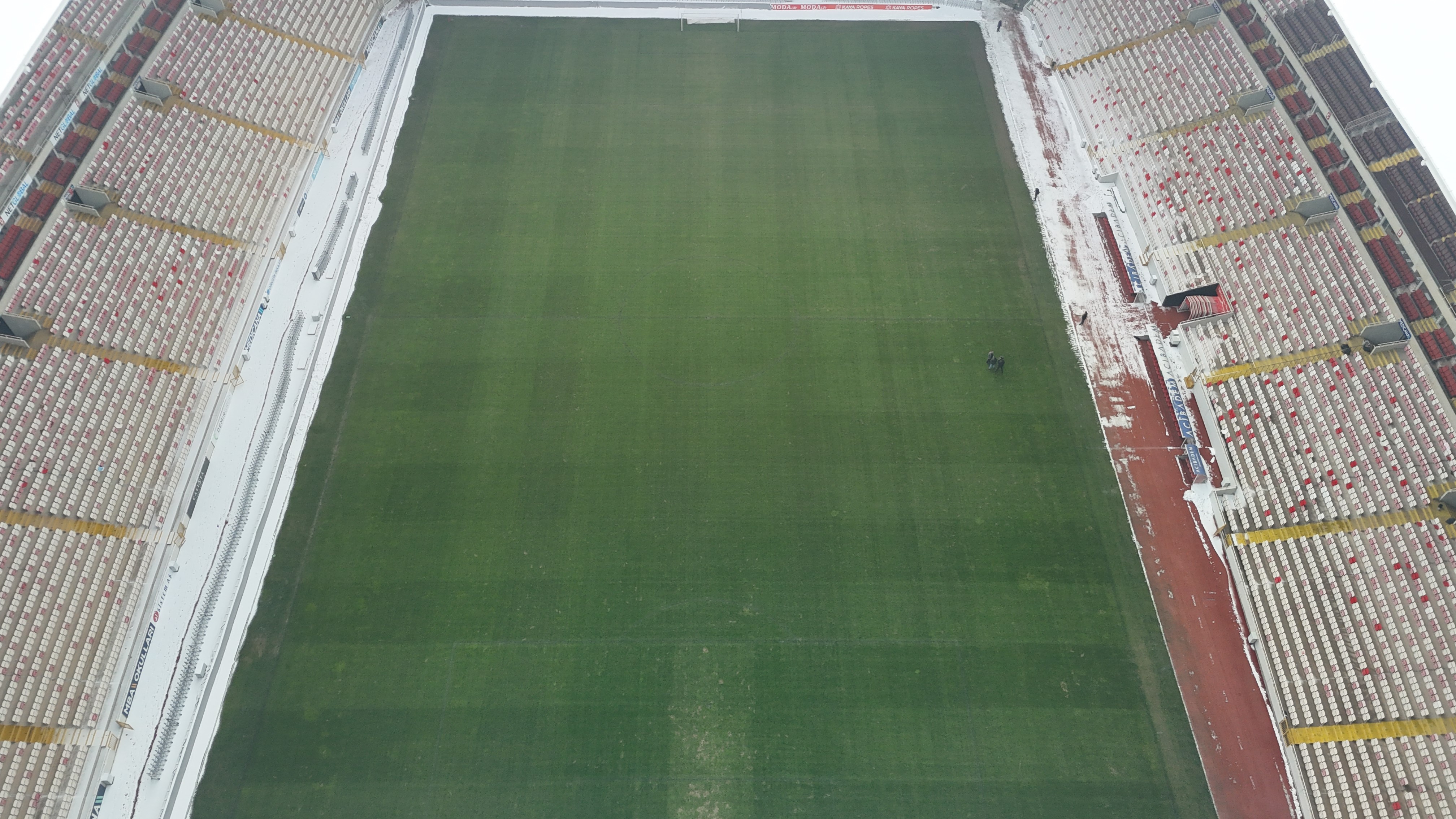 Sivasspor ile Galatasaray maçının oynanacağı Sivas 4 Eylül Stadyumu, kentte aralıklarla etkili olan kar yağışı ve dondurucu soğuğa rağmen alttan ısınma sistemiyle karşılaşmaya hazır hale getirildi.
