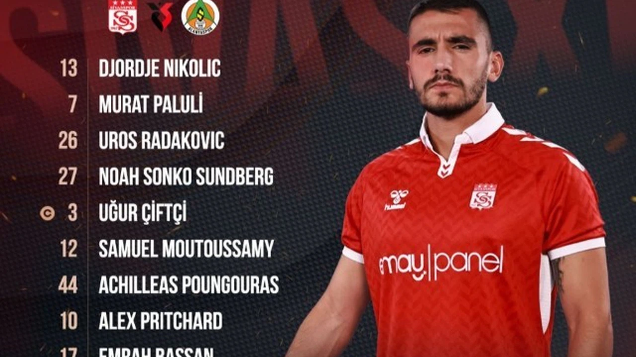 Alanyaspor karşısında birazdan başlayacak olan karşılaşma öncesinde takım kadrosu belli oldu. Buna göre: Djordje Nikolic, Murat Paluli, Uros Radakovic, Noah Sonko Sundberg, Uğur Çiftçi, Samuel Moutoussamy, Achilleas Poungouras, Alex Pritchard, Emrah Başsan, Garry Rodrigues, Fode Koita ile Sivasspor maça çıkacak.