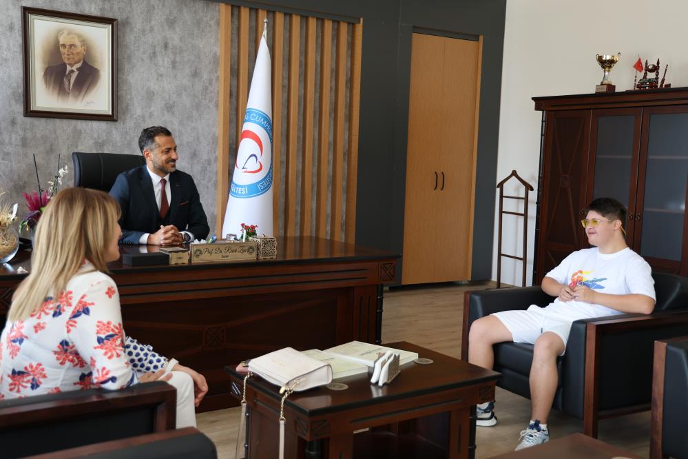 Down sendromlu Tamer'in annesi Esin Yazıcı, “Biz Sivassporlu bir aileyiz zaten. İlk evlendiğimizde evimizde iki şey vardı, biri Sivassporlu eşim diğeri de Sivasspor. Tamer de ister istemez Sivasspor'un içinde büyüdü, gelişti ve kocaman oldu. Diş sorunumuzdan dolayı Diş Hekimliği Fakültesine başvurduğumuzda Dekanımız çok güzel karşıladı. Tahmin ediyorum ki ekibin tamamı da Sivassporluydu. Tamer de Basketbolcu ve futbolcu bir genç olarak bütün grubu Sivasspor ateşi ile yaktı. Nasıl girdi çıktı? Biz de anlamadık. Kendisi Rey Manaj'ın tutkunu. Evimizde Rey Manaj'a ait resimler ve posterler var. Onunla en yakın zamanda görüşmek istiyoruz” dedi.