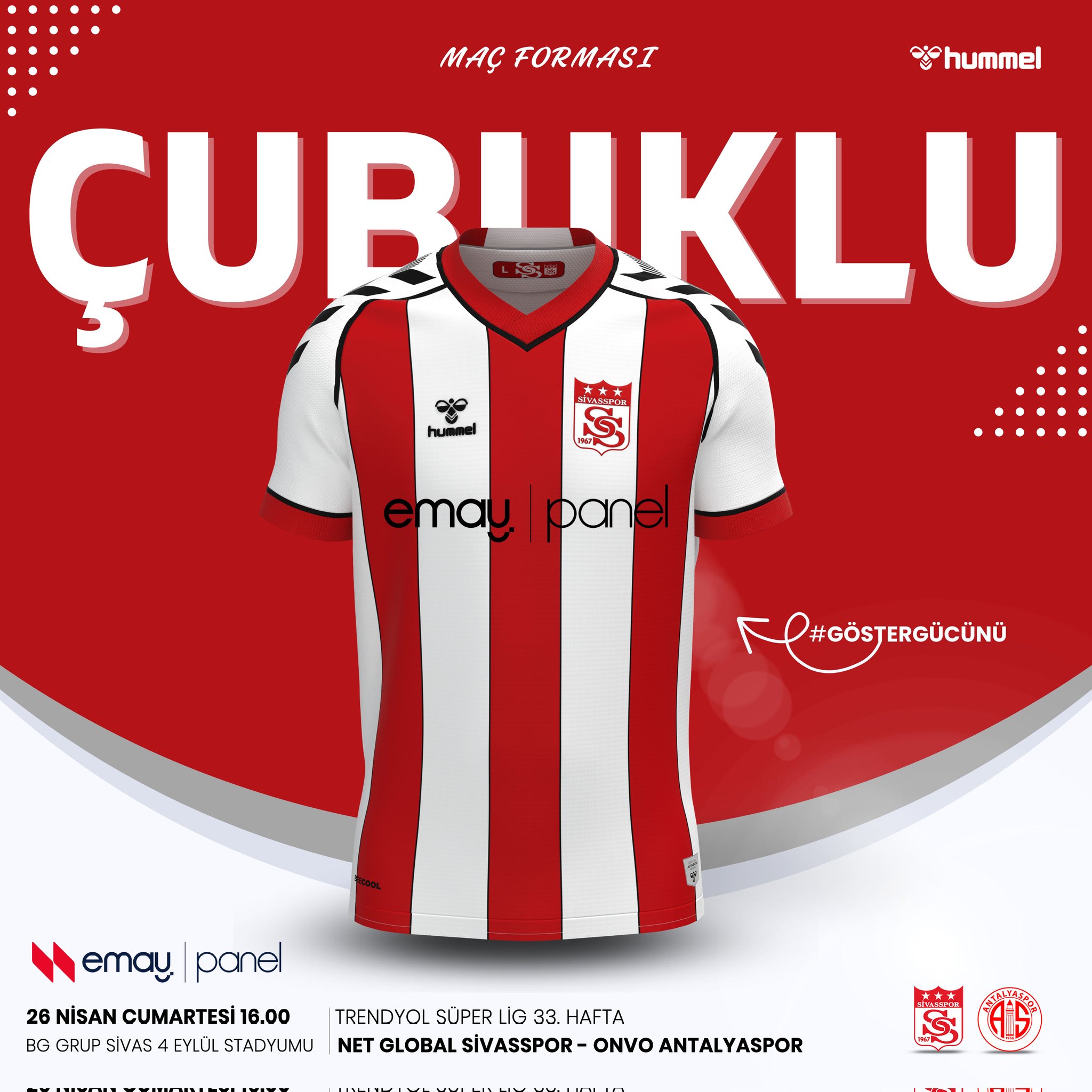 Net Global Sivasspor, Süper Lig'in iddialı ekiplerinden Onvo Antalyaspor ile karşılaşacak. Bu önemli mücadelede sarı-lacivertliler, çubuklu forma, beyaz şort ve beyaz konç kombinasyonuyla sahaya çıkacak. Kalecimiz ise maç boyunca yeşil forma giyecek.