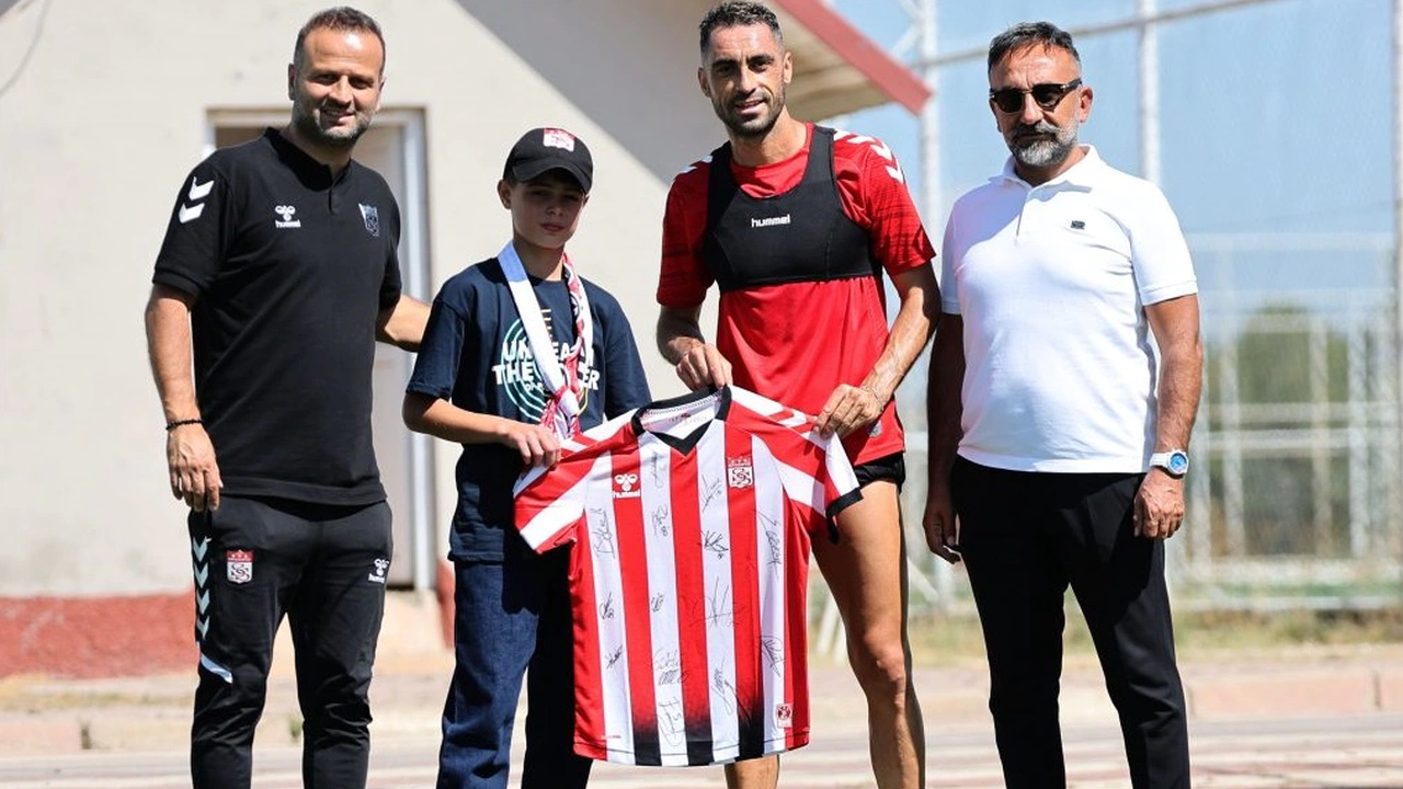 Büyük Sivasspor sevdasıyla gönülleri kazanan İbrahim’e ulaşan yönetim kurulu, taraftara kombine kart hediye ederken, takım kaptanı Uğur Çiftçi de imzalı formamızı takdim etti.