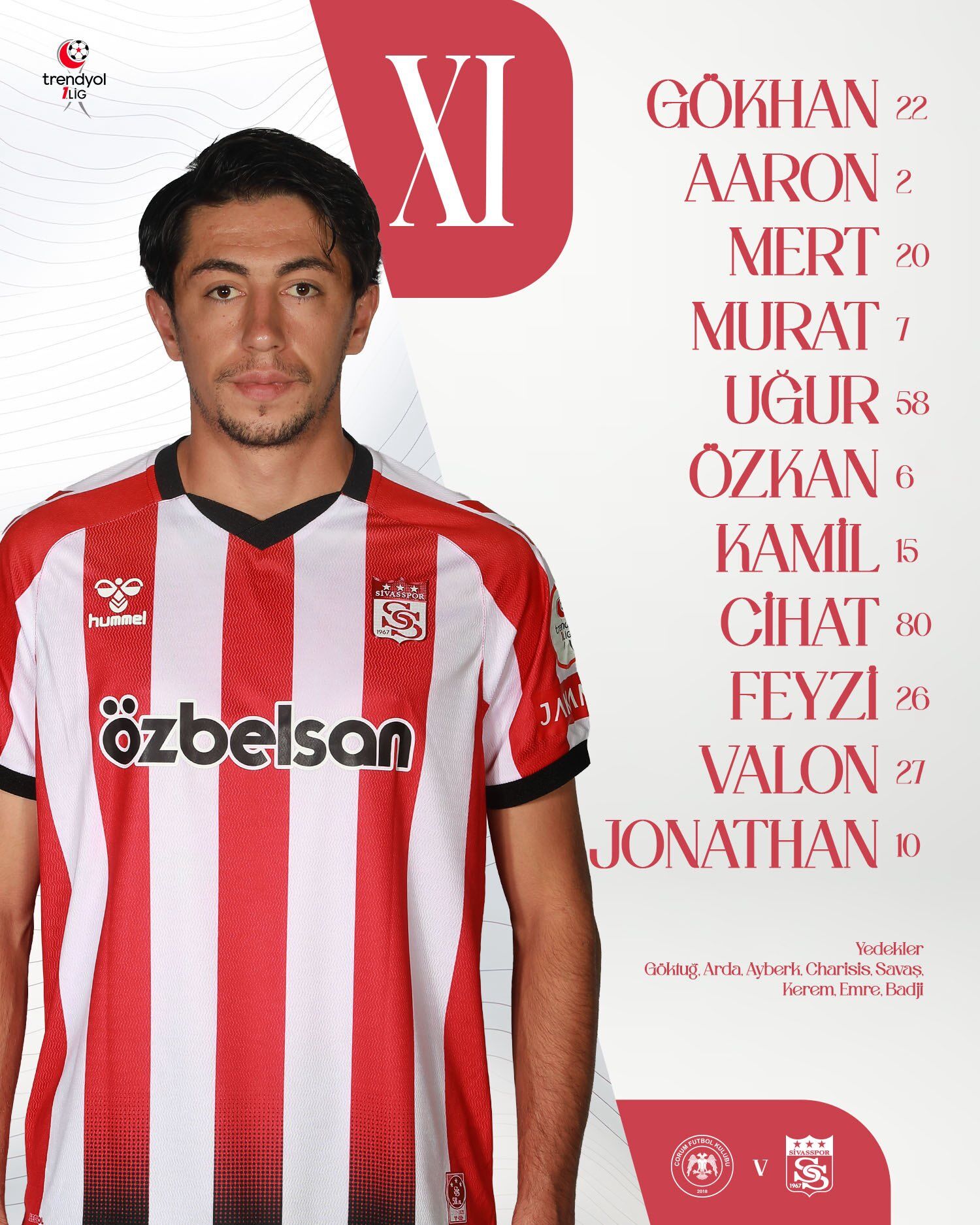 Trendyol 1. Lig’de üst sıraları zorlayan Sivasspor, deplasmanda oynayacağı zorlu Çorum FK maçı için geri sayımı tamamladı. Teknik heyetin stratejik tercihlerine göre şekillenen ilk 11’de, kalede tecrübeli isim Gökhan görev alırken; savunma hattı Aaron, Mert, Murat ve Uğur’dan oluştu. Orta sahada oyunun yükünü Özkan, Kamil ve Cihat sırtlayacak. Gol yollarında ise Feyzi ve Valon kanat organizasyonlarıyla etkili olmaya çalışırken, ileri uçta Jonathan rakip savunmayı zorlayacak isim olacak.
