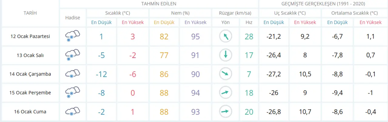 Meteoroloji Genel Müdürlüğü’nün tahminlerine göre, 13 Ocak Salı günü Sivas’ta kar yağışının aralıklarla devam etmesi, sabah ve gece saatlerinde ise yoğun buzlanma yaşanması bekleniyor. Özellikle kırsal bölgelerde ulaşımda aksama ihtimali dikkat çekiyor. Geçmiş yıllarda benzer hava koşullarında art arda tatil kararları alınmış olması, beklentiyi güçlendiriyor.