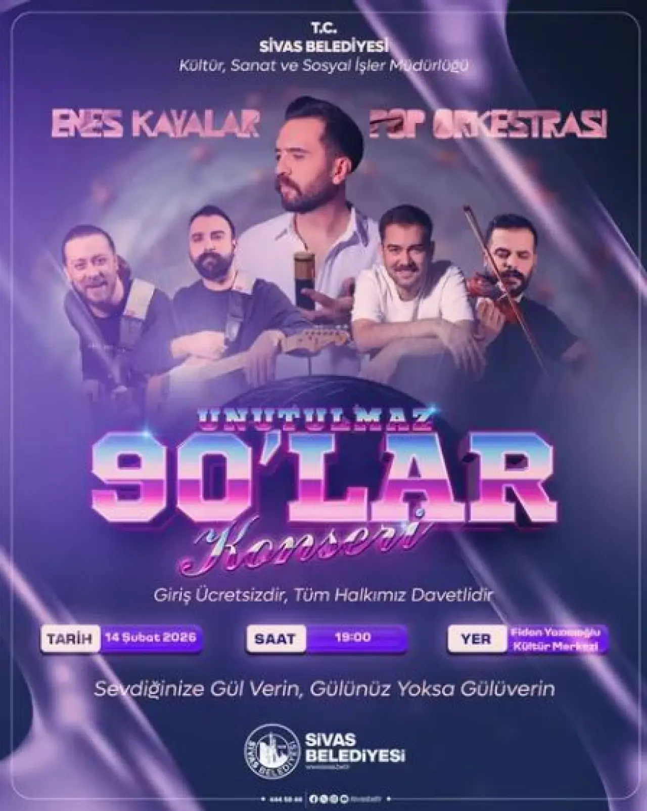 Sivas Belediyesi Kültür, Sanat ve Sosyal İşler Müdürlüğü, vatandaşları geçmişe götürecek anlamlı bir projeye imza atıyor. Müzik dünyasının "altın çağı" olarak kabul edilen 90’lı yılların o samimi ve unutulmaz şarkıları, Sivas’ta yeniden yankılanacak. Nostalji tutkunlarını bir araya getirecek olan bu özel gece, katılımcılara hafızalardan silinmeyen bir müzik ziyafeti sunmayı hedefliyor.
