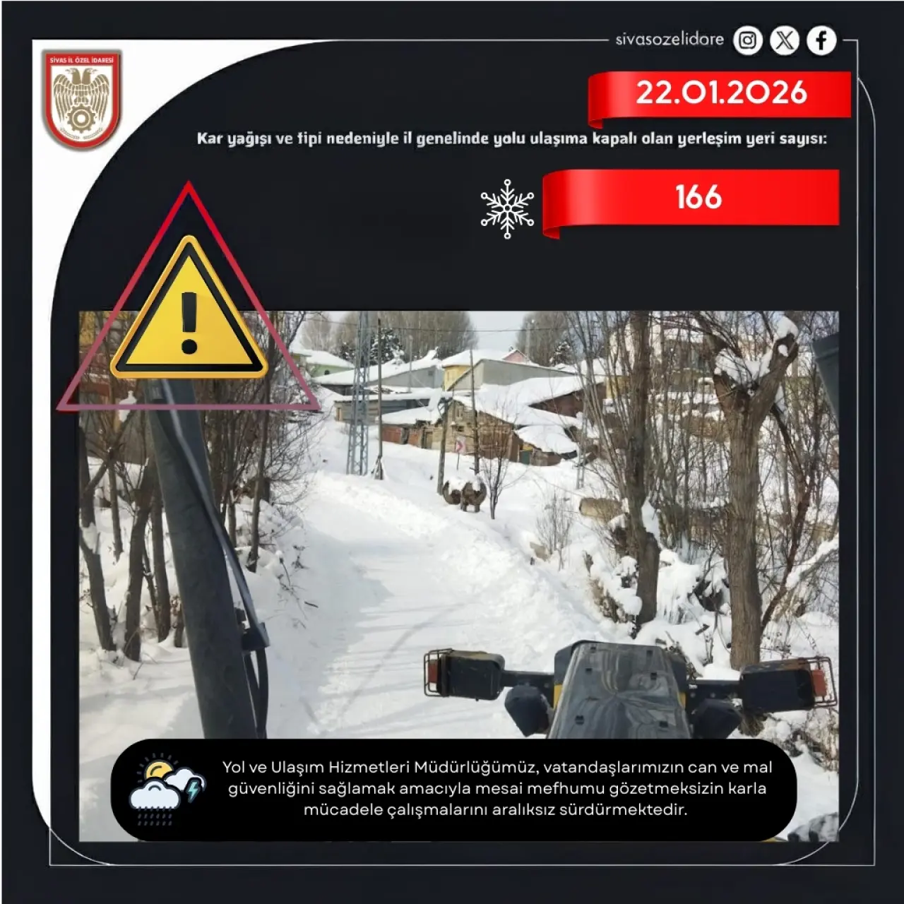 Olumsuz hava koşullarının en ağır bilançosu ise köy yollarında yaşanıyor. Yoğun yağış ve fırtına sonrası il genelinde tam 166 yerleşim yerinin yolu araç ulaşımına tamamen kapandı. Şehir merkezinden uzaklaştıkça karın ve tipinin şiddeti artarken, yerleşim yerlerine giden yolların karla dolması nedeniyle vatandaşlar mahsur kaldı. Dış dünya ile bağı kesilen yerlerde hayat durma noktasına geldi.