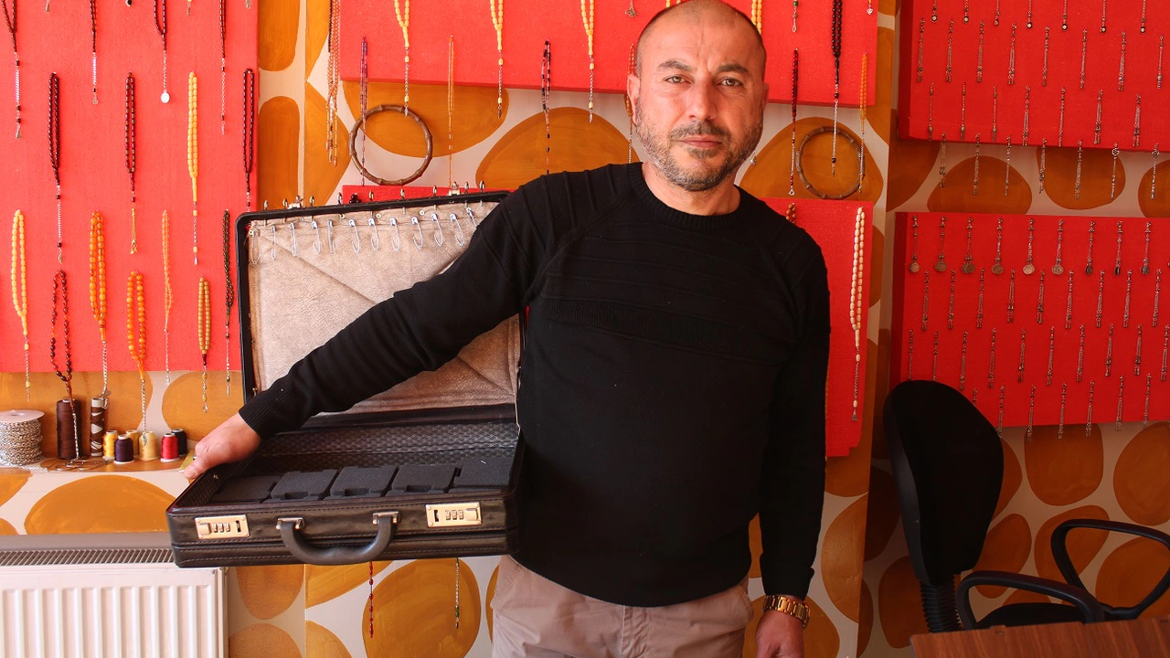 Sivas’ta tespih dükkanı sahibi Hasan Barış, 20 yıllık yol arkadaşı olan tespih çantasıyla dolu dolu bir hikayeyi paylaştı. Bu çanta, sadece bir eşya değil, onun için bir hayat arkadaşı, evladı gibi.