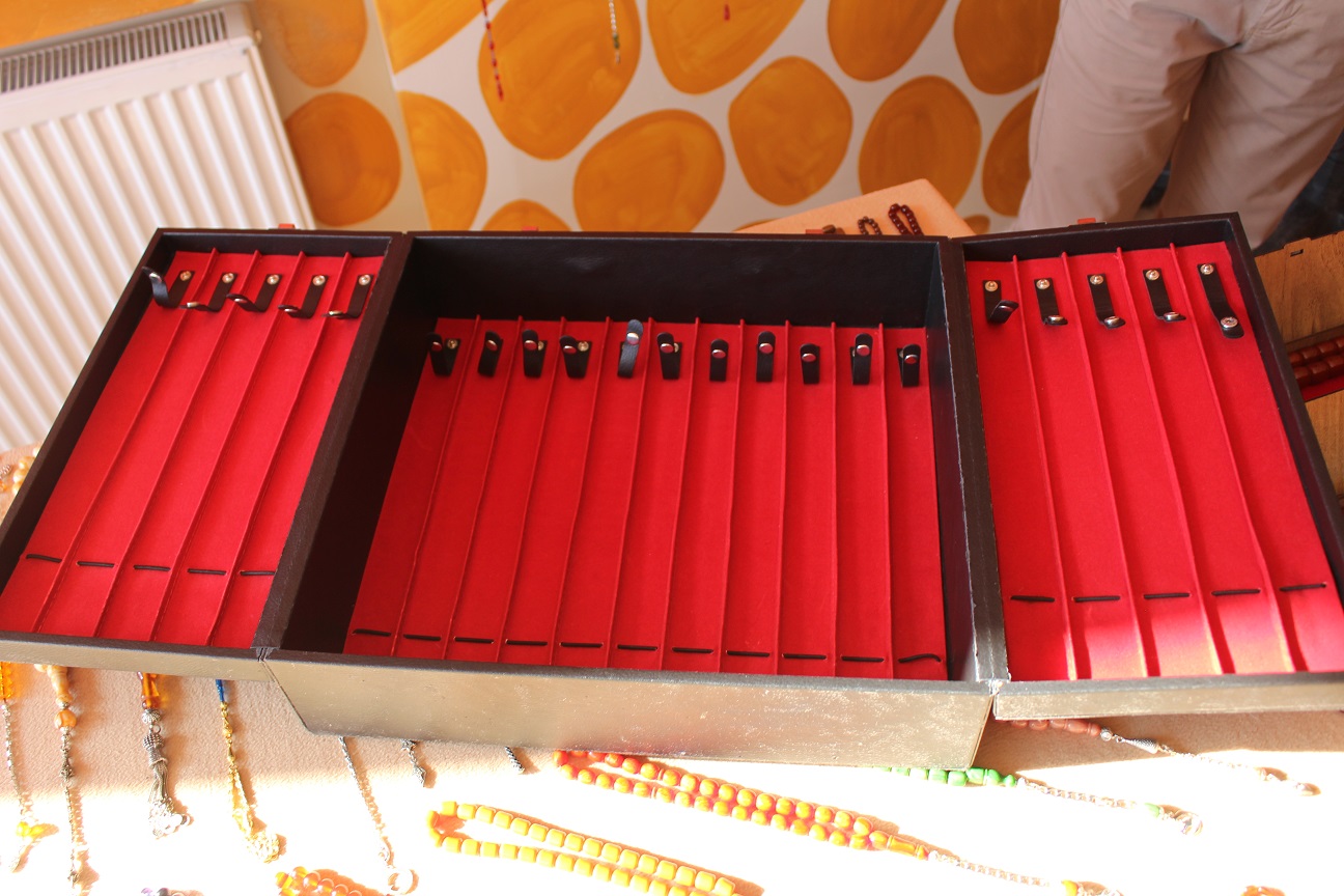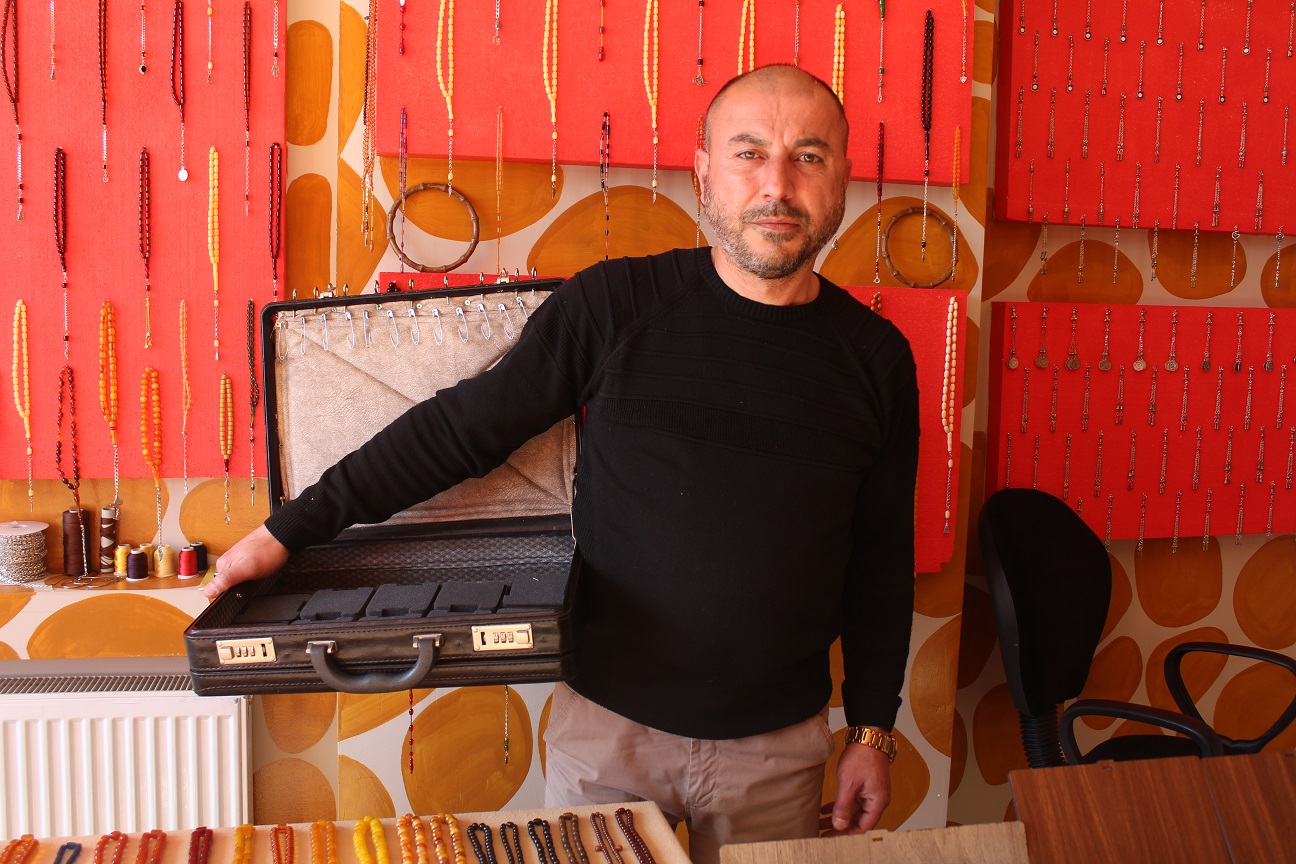 Hasan Barış, 20 yıl önce fırıncılık yaparken iflas ettiğini ve hayata tutunmak için yeni bir yol aradığını anlatıyor. “10-15 tane tespih alıp kahvehanelerde satmaya başladım. Evime ekmek götürmek için başladığım bu iş, zamanla bir tutkuya dönüştü. Gitmediğim yer kalmadı. Ekmeğimi bu çantadan kazandım,” diyor.