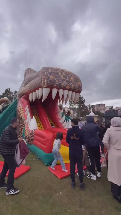 Belediye öncülüğünde gerçekleştirilen şenlik, çocukların neşeli kahkahalarıyla yankılandı. Özel olarak kurulan dev şişme oyun parkları, miniklerin enerjilerini atıp doyasıya eğlenmelerini sağladı.