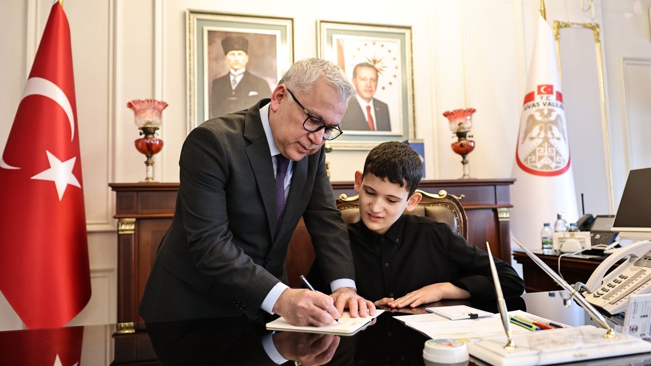 Sivas Valiliği tarafından düzenlenen 23 Nisan etkinlikleri kapsamında, anlamlı bir buluşma gerçekleştirildi. Yılmaz Şimşek, 23 Nisan Ulusal Egemenlik ve Çocuk Bayramı vesilesiyle Sivas Karbeyaz Özel Eğitim Uygulama Okulu öğrencisi Salih Muhammed Zaptiye’ye makam koltuğunu temsili olarak devretti.