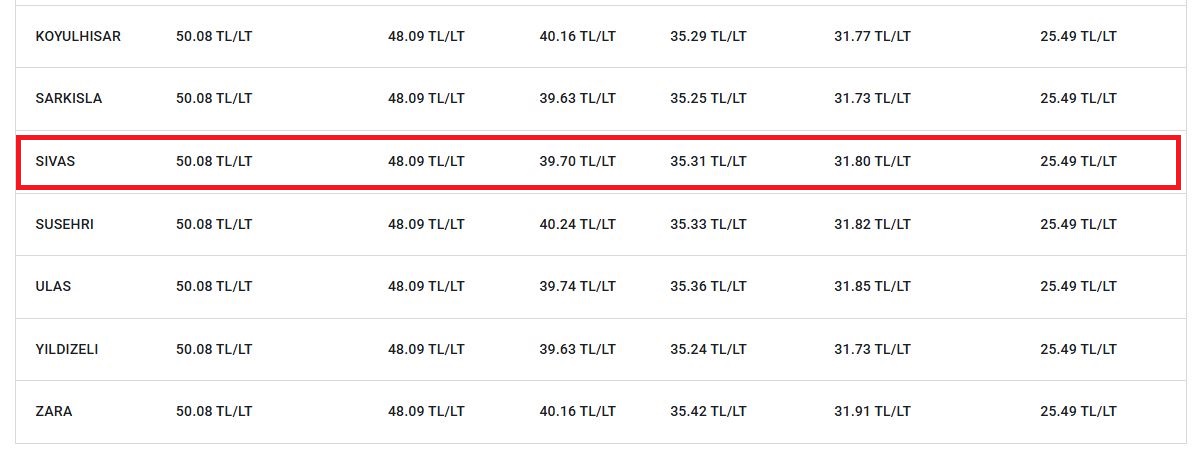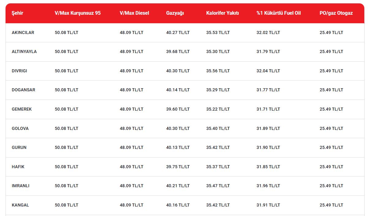 Sivas'ta dün ortalama 48,59 TL'den işlem gören benzinin litre fiyatı, bu sabah itibarıyla 50,05 TL'yi bularak yeni bir rekor kırdı.