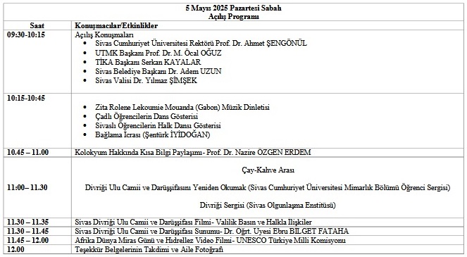 Divriği Ulu Cami ve Darüşşifası’nın UNESCO Dünya Mirası Listesi’ne kabulünün 40. yılı kapsamında, 5 Mayıs Afrika Dünya Mirası Günü’nde anlamlı bir etkinlik gerçekleştiriliyor. Türkiye ve Afrika ülkeleri gençlerini bir araya getirecek olan Miras Farkındalığı Kollokyumu, Sivas Cumhuriyet Üniversitesi Dört Eylül Kültür Merkezi’nde saat 09.30’da başlayacak.