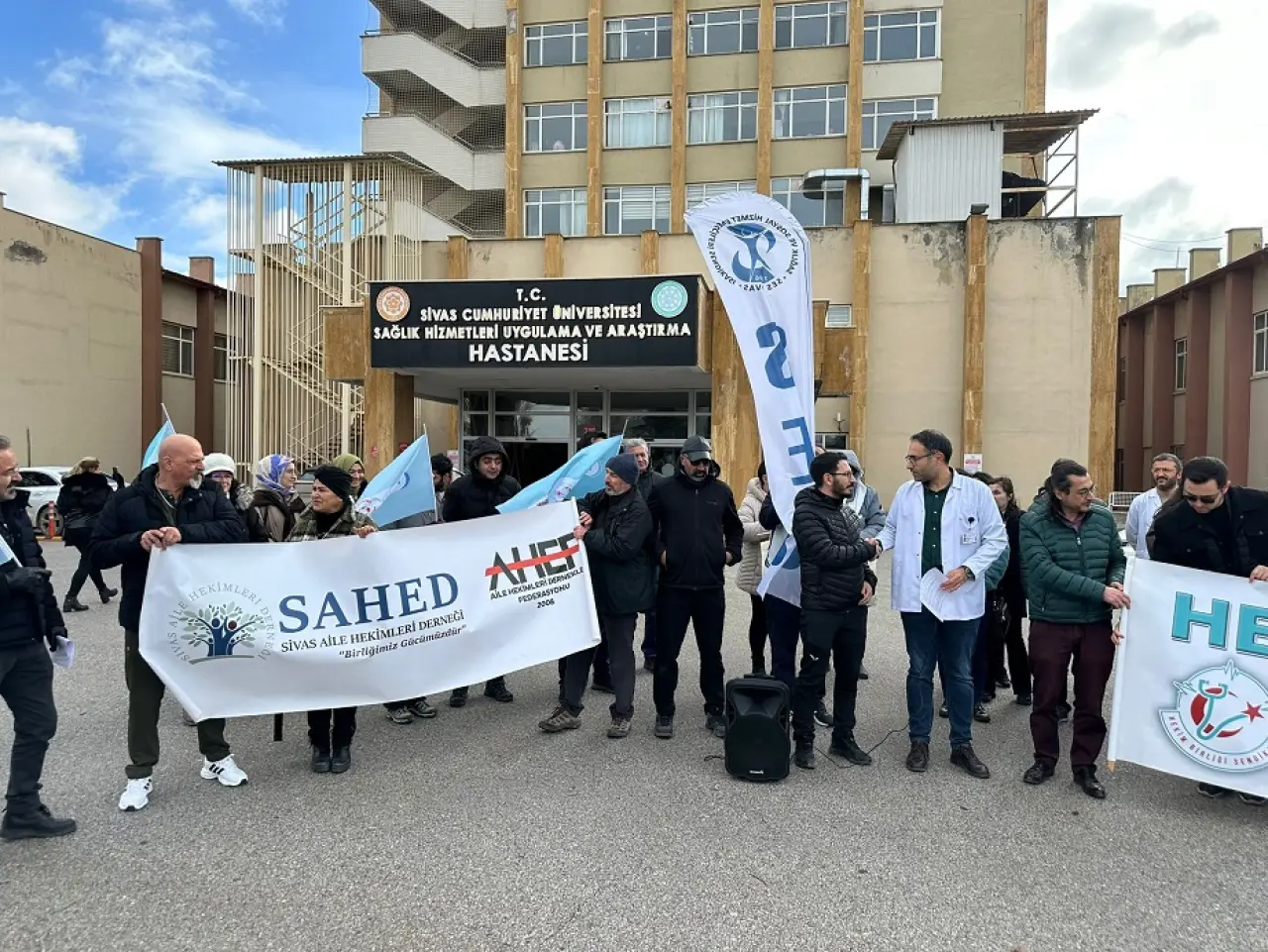 Sivas Cumhuriyet Üniversitesi Başhekimliği önünde gerçekleştirilen basın açıklamasına Sivas Aile Hekimleri Derneği, Sivas-Erzincan Tabip Odası, Hekim Birliği Sendikası Sivas Şubesi ve SES Sivas Şubesi katıldı. Açıklamada, aile hekimliği sistemindeki performans odaklı uygulamaların sürdürülemez hale geldiği vurgulandı.