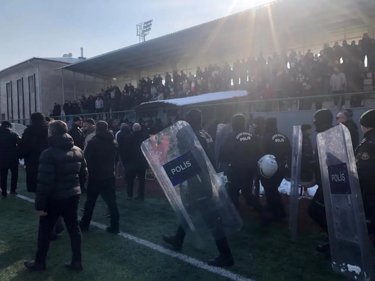 Karşılaşmada görev alan çok sayıda polis zamanında müdahale ederek sahaya girdi ve olayların büyümesini engelledi.