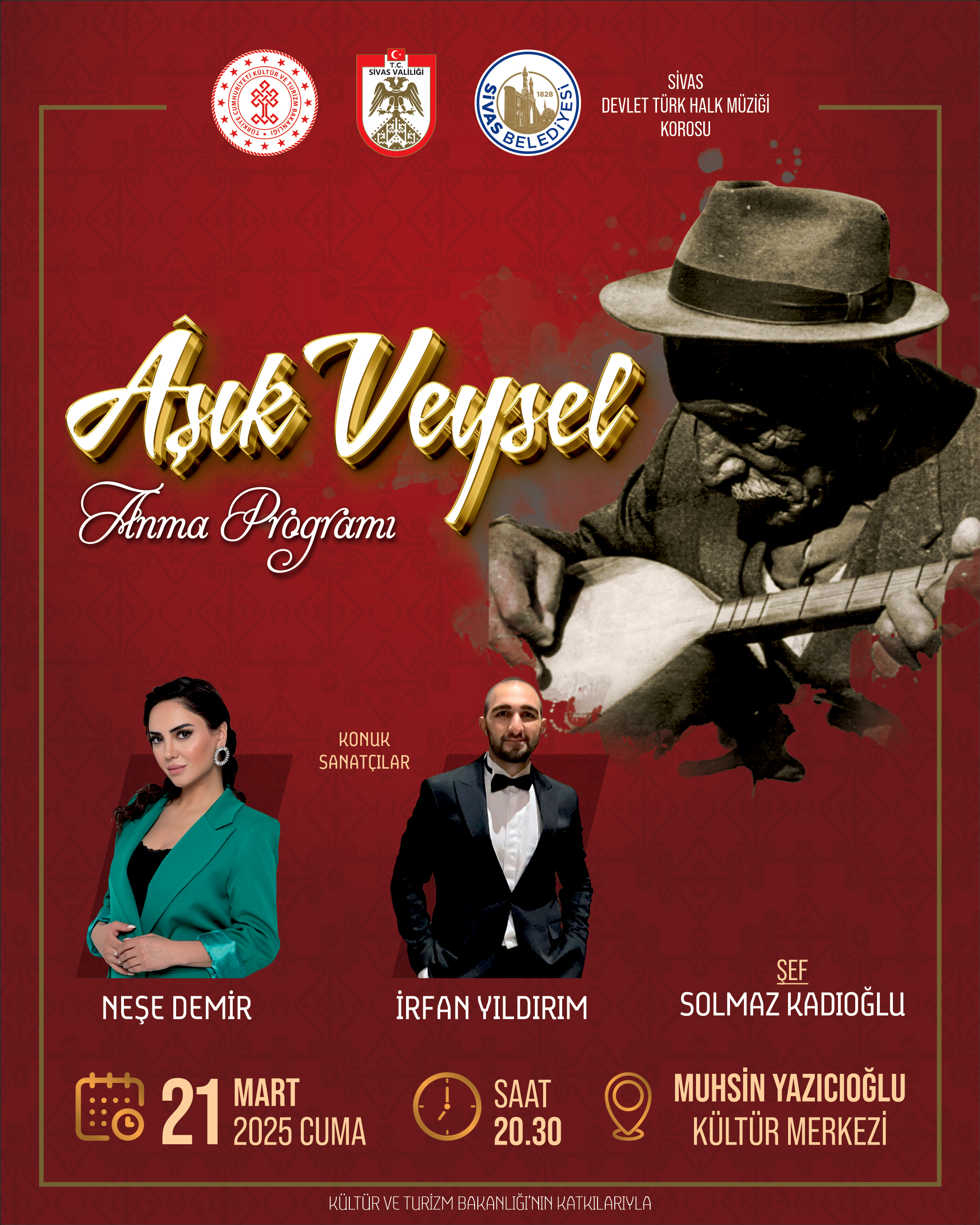 Sivas Valiliği, Sivas Belediyesi ve Kültür ve Turizm Bakanlığı’nın destekleriyle düzenlenen programda, Aşık Veysel’in unutulmaz eserleri bir kez daha sanatseverlerle buluşacak.