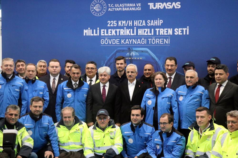 Ulaştırma ve Altyapı Bakanı Abdulkadir Uraloğlu, Sakarya'da 225 km hıza sahip yerli ve milli elektrikli tren seti gövde kaynak törenine katıldı. İlk kaynağı yapan Bakan Uraloğlu, "225 km hıza sahip ilk yerli ve milli elektrikli tren setlerimizin üretimine başlayacağımız bu önemli törende sizlerle bir araya gelmekten büyük memnuniyet duyuyorum. Son 23 yılda yerli sanayimizi geliştirerek birçok stratejik alanda yüksek teknolojiye sahip milli ürünlerimizle dünya çapında küresel bir ihracat ülkesi olduk. Kendi otomobilimizi, haberleşme ve gözlem uydularımızı, savaş uçaklarımızı, helikopterlerimizi, gemilerimizi ve milli elektrikli trenlerimizi üreterek tarihe damga vuran bir süreç yaşıyoruz. Bu süreç, milletimizin kendi gücüyle yükselişinin, öz güveninin ve aydınlık geleceğimizin simgesi oldu. Bir zamanlar bayrak ipi üretemeyen, toplu iğneyi dahi ithal eden Türkiye bugün dünyanın en önemli ve stratejik teknolojilerini üretiyor. Bir zamanlar bizlere üretilmesi imkânsız gelenler, hayal ürünü denilenler, bugün gerçeğe dönüştü" diye konuştu.