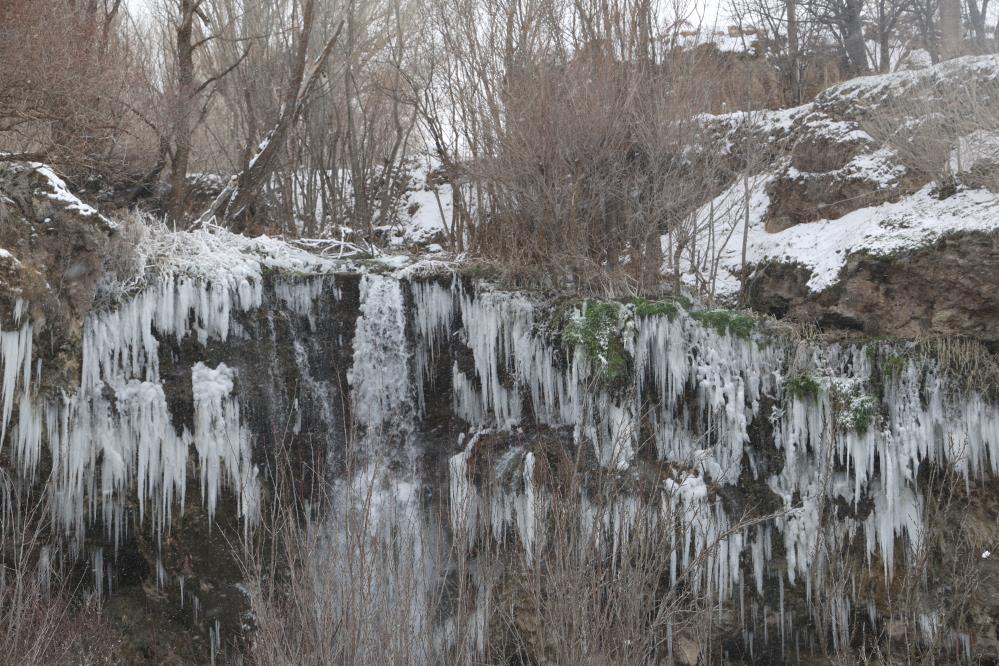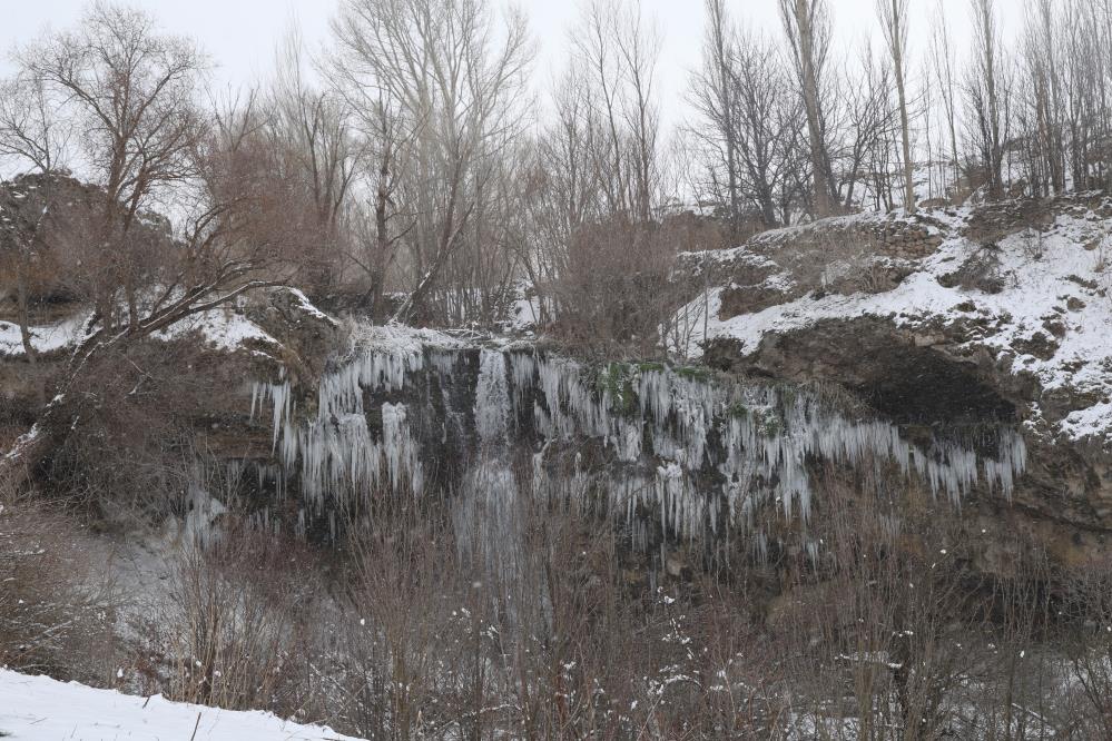 Bu sert soğuklar, Sivas’ın saklı güzelliklerinden biri olan Değirmenaltı Şelalesi’ni tamamen dondurdu.