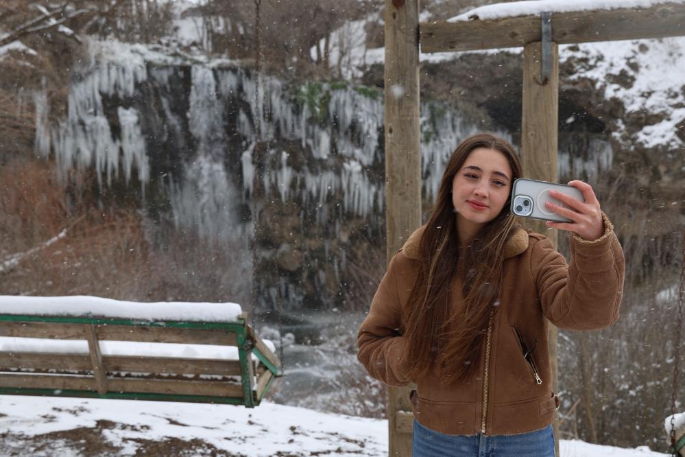 "Yazın da gelmek istiyorum ama ilk gelişim kışa denk geldi. Şelalenin kışı da bir başka güzelmiş. Görsel olarak harika bir manzara sunuyor ama hava gerçekten çok soğuk. Bu sert soğuklarla birlikte şelalenin donması da gayet normal."
