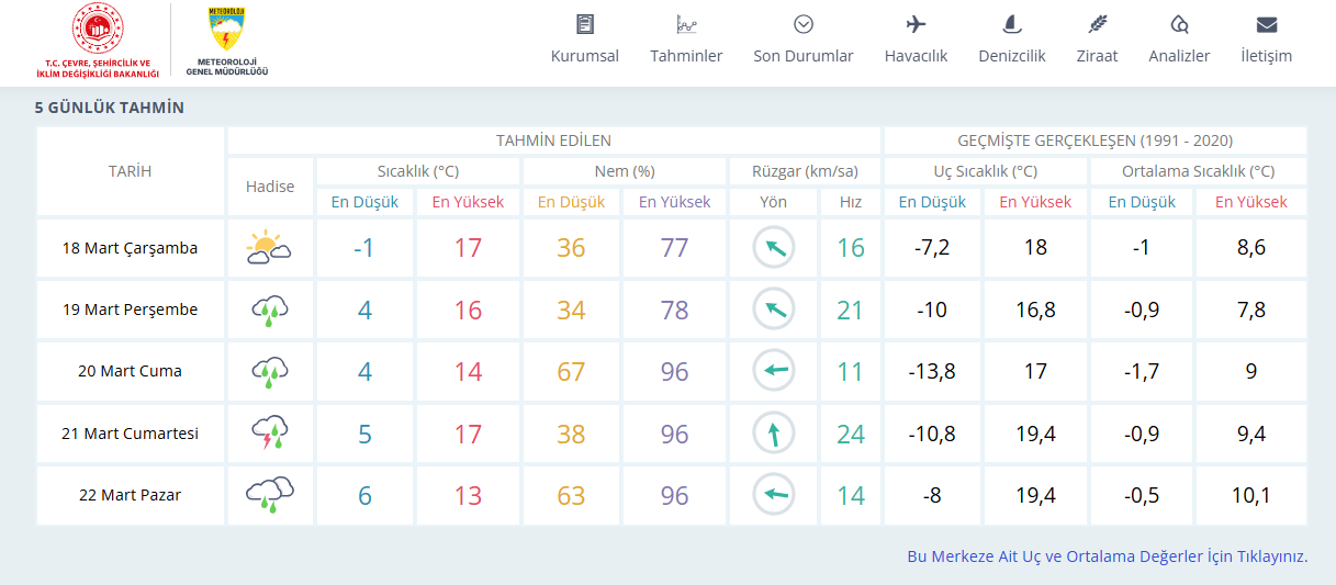 Sivas için paylaşılan 5 günlük hava tahminine göre, Ramazan Bayramı’nın ilk günü olan 20 Mart Cuma günü kentte yağışlı bir hava bekleniyor. Gün boyunca aralıklarla görülecek yağmur, bayram ziyaretlerine çıkacak vatandaşları yakından ilgilendiriyor.