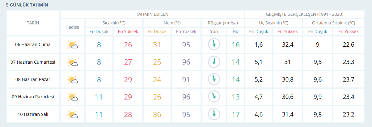Sivas'ta 6 Haziran Cuma günü parçalı bulutlu bir hava bekleniyor. En yüksek sıcaklığın 26∘C civarında olacağı tahmin edilirken, en düşük sıcaklığın ise 8∘C olması öngörülüyor.