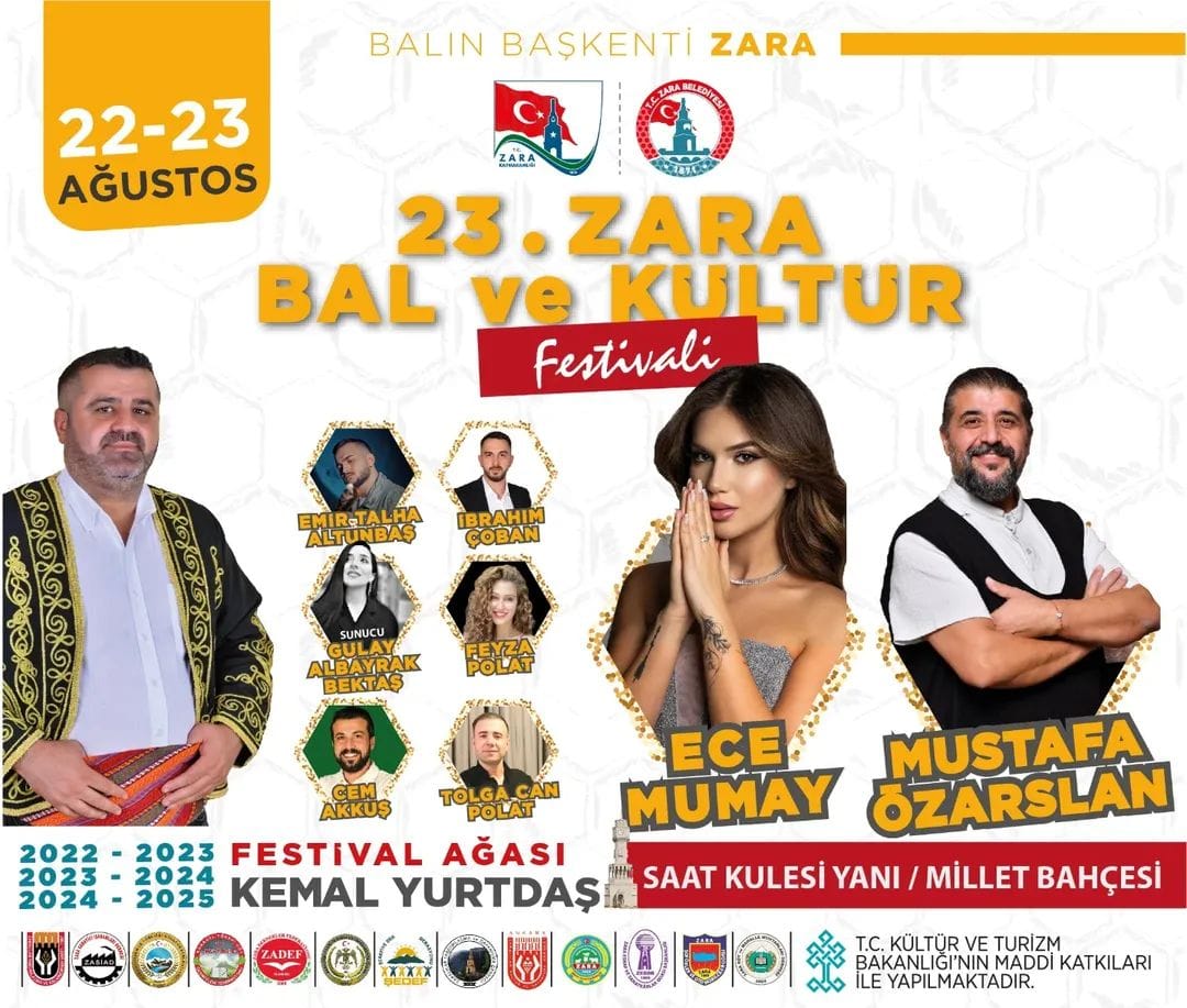Festivalin geleneksel festival ağalığını üç dönemdir Kemal Yurtdaş yürütüyor. T.C. Kültür ve Turizm Bakanlığı’nın maddi destek sağladığı bu etkinlik, balın başkenti Zara’da hem yerel halkı hem de ziyaretçileri buluşturacak unutulmaz anlar sunacak. Zara Bal ve Kültür Festivali, bölgenin doğal ve kültürel değerlerini tanıtmanın yanı sıra, müzik ve eğlence dolu iki gün vadediyor.
