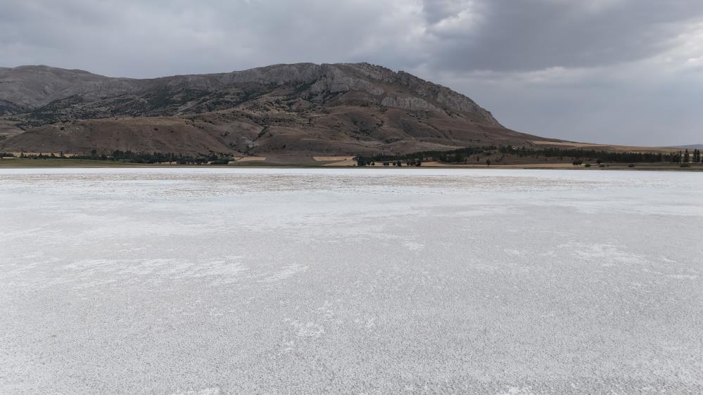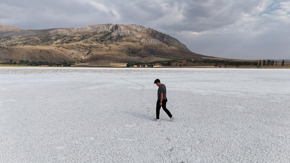 Tüm yurdu etkisi altına alan sıcak hava dalgası ve kuraklık, Sivas'ın doğal güzelliklerini de tehdit etmeye devam ediyor. Sivas'ın Ulaş ilçesinde bulunan ve su tuttuğu dönemlerde göçmen kuşlara ev sahipliği yapmasıyla bilinen Kellah Gölü, bu yaz da tamamen kuruyarak adeta beyaz bir çöle dönüştü. Kuruyan gölden geriye kalan uçsuz bucaksız tuz tabakası, dron ile havadan görüntülendi.