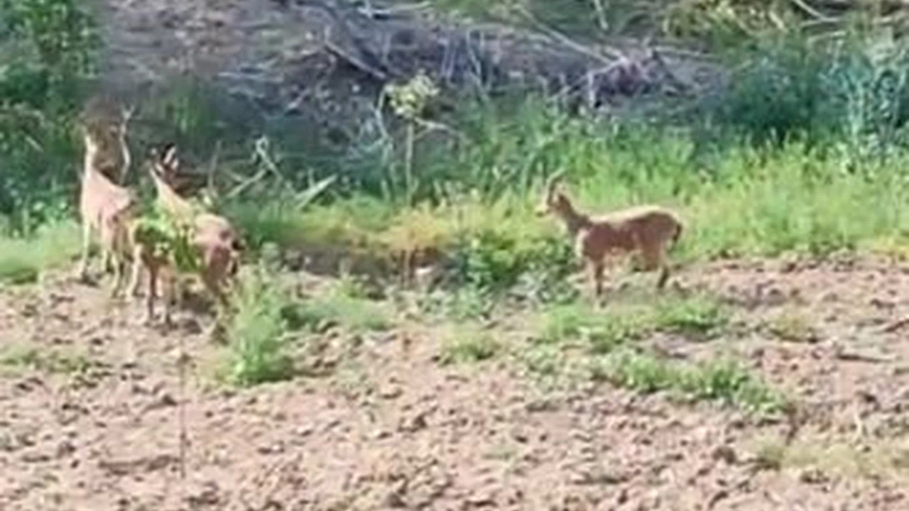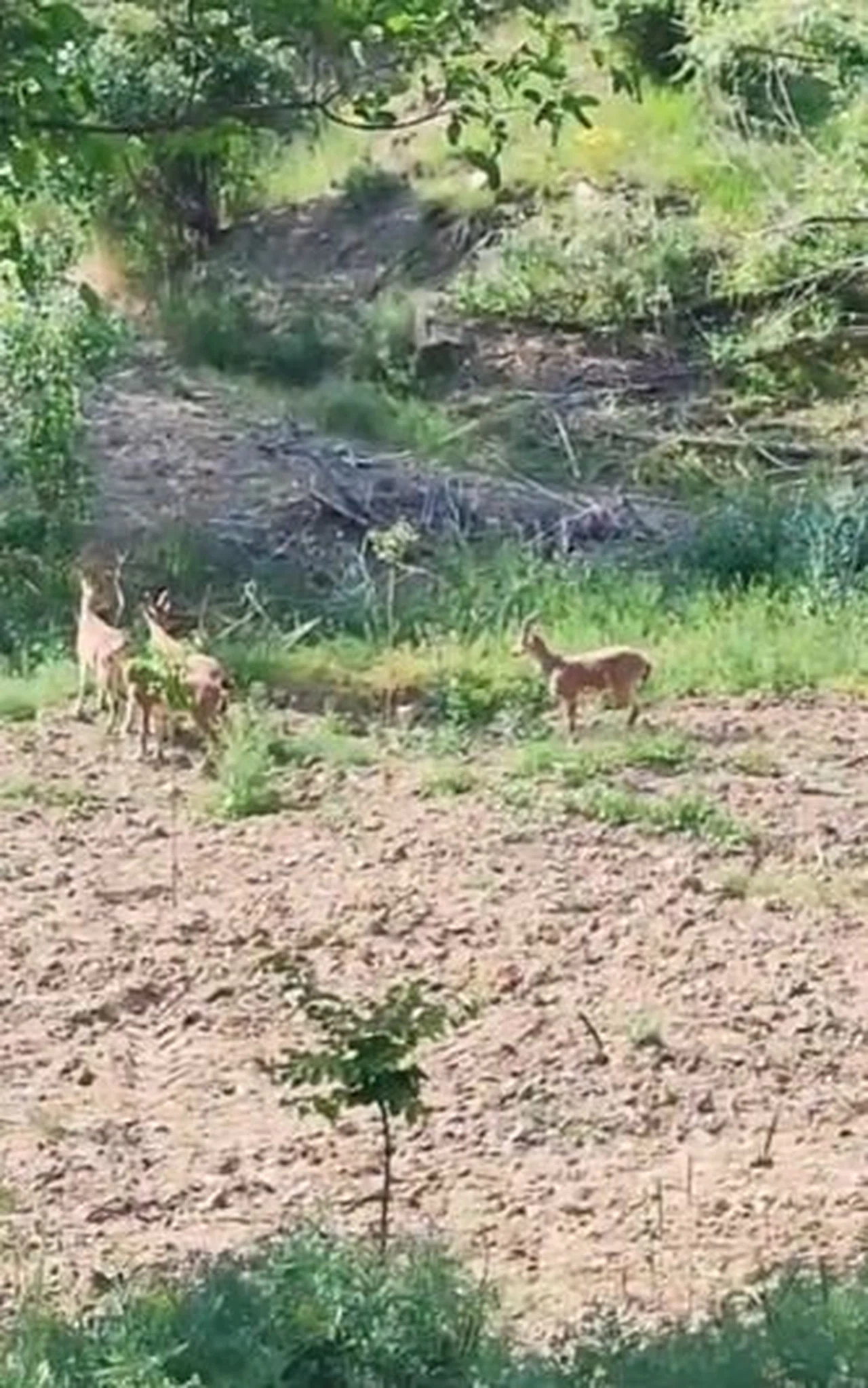 Cep telefonu ile 4 yaban keçisini kaydeden çiftçi, "Kızlar sizi burada vururlar, taşın üstüne çıkın" diye seslendi. Bir süre arazide gezinen yaban keçileri, gözden kayboldu.