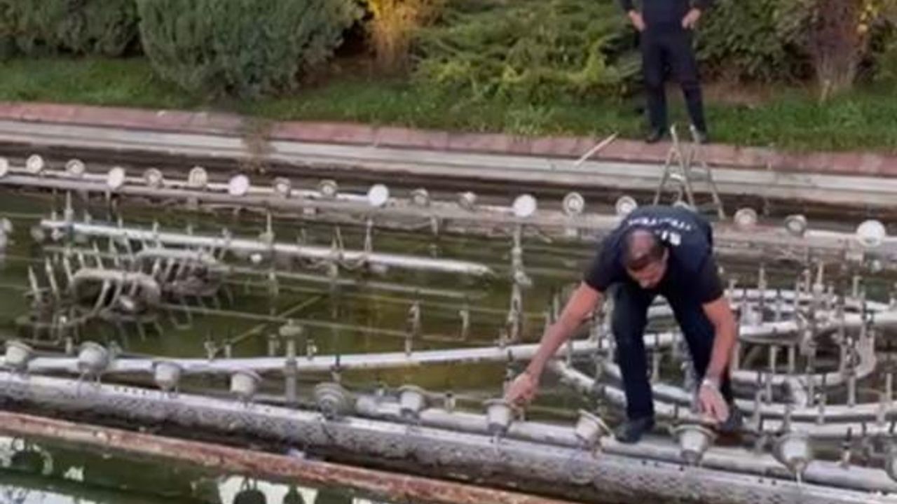 Sivas'ta fıskiyeli süs havuzunun boru hattına sıkışan kuş, itfaiye ekipleri tarafından kurtarıldı.