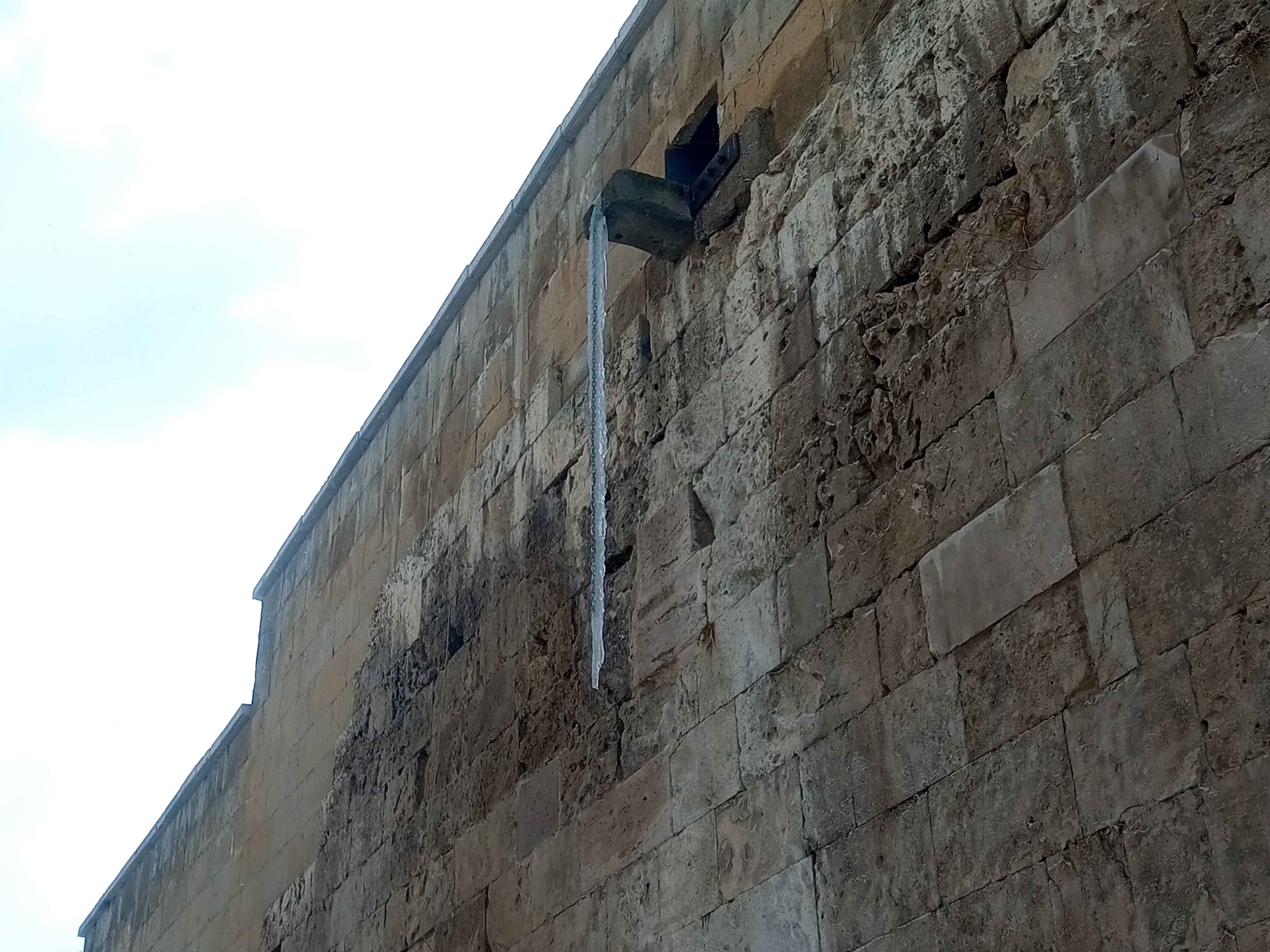 Sivas’ta ilginç bir hava durumu da dikkat çekiyor. Şehrin bir tarafında güneş açarak kar ve buzların erimesine neden olurken, diğer tarafında ise soğuk hava etkisini sürdürüyor. Bu durum, özellikle tarihi yapıların gölgede kalan bölümlerinde buz sarkıtlarının oluşmasına yol açıyor. Şifaiye Medresesi’nin kuzeye bakan cephesinde ise bu durum daha belirgin hale gelirken, çatılardan sarkan buz kütleleri risk oluşturmaya devam ediyor.