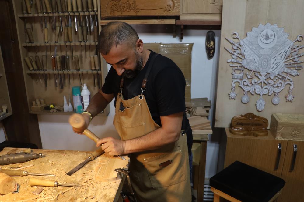 Sivas'ta ahşap oyma ustası Süleyman Daştan, kolay işleme yapılabilmesi nedeniyle yurt dışından getirttiği Afrika kökenli ağaçlara Sivas'ın tarihi motiflerini işliyor.
