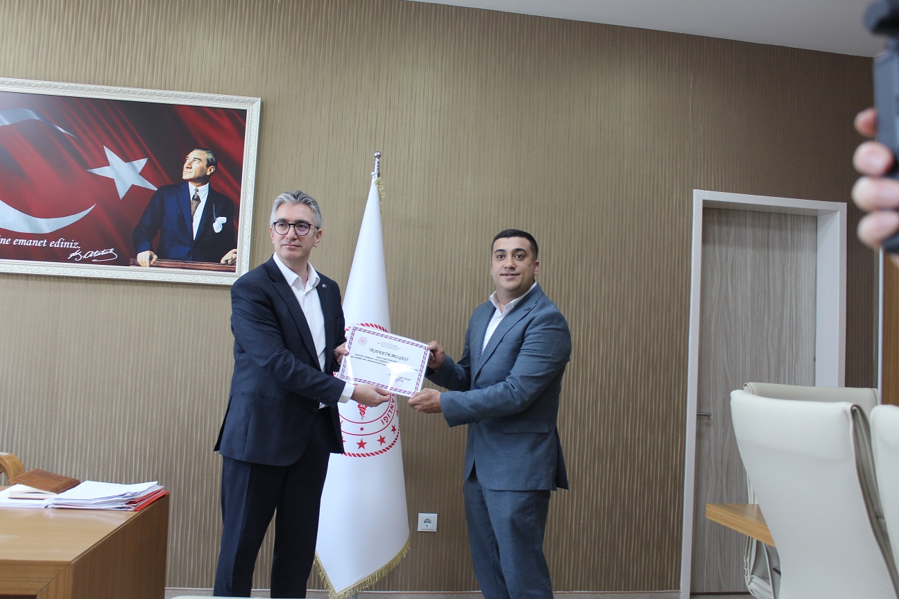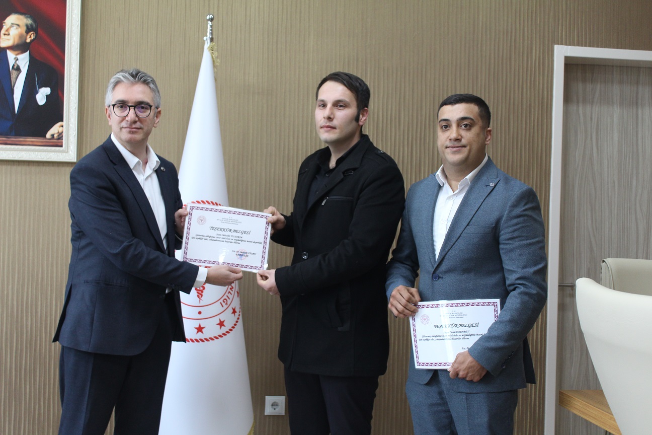 Fidan, gösterdikleri soğukkanlılık ve özverili müdahale nedeniyle hastane personeline teşekkür belgesi takdim etti.