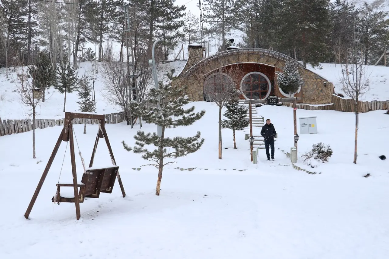 Özellikle Paşabahçe Mesire Alanı’nda ortaya çıkan manzara dikkat çekti. “Hobbit Evler” olarak bilinen yamaç evlerinin bulunduğu alan, kar yağışının ardından adeta kartpostallık görüntülere sahne oldu. Beyaz örtüyle kaplanan küçük evler ve çevresindeki ağaçlar, ziyaretçilerin ilgisini çekti. Mesire alanında kar üzerinde yiyecek arayan evcil tavşanlar ise soğuk havanın ortasında doğanın sessizliğini yansıtan görüntüler oluşturdu.