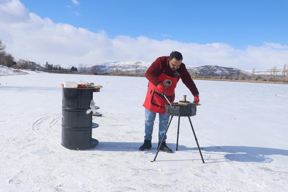 Sivas'ta etkili olan soğuk hava sonrası kentte bulunan birçok göl dondu. Sivas'ın soğuk havasını gözler önüne sermek isteyen Raşit Yıldırım, buzun üzerinde mangal yakarak tost yaptı.