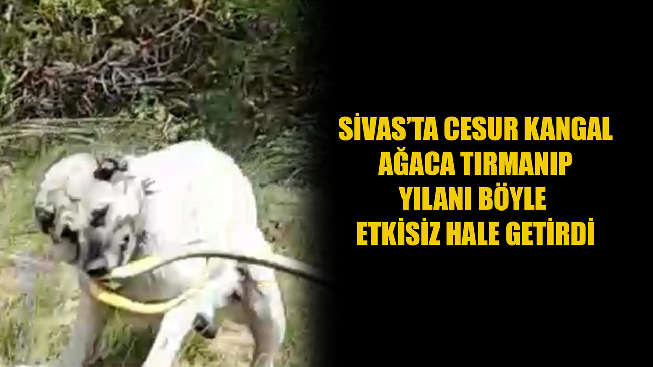 Sivas’ta koyun sürüsünü koruyan 'Haskız' isimli gebe kangal köpeği, yaklaşık 2 metre uzunluğundaki yılanı fark edip ağaca tırmandı ve yılanı etkisiz hale getirdi. Dünyanın en iyi sürü koruma köpeği olarak kabul edilen kangal, bu cesur hareketiyle bir kez daha kendine hayran bıraktı.