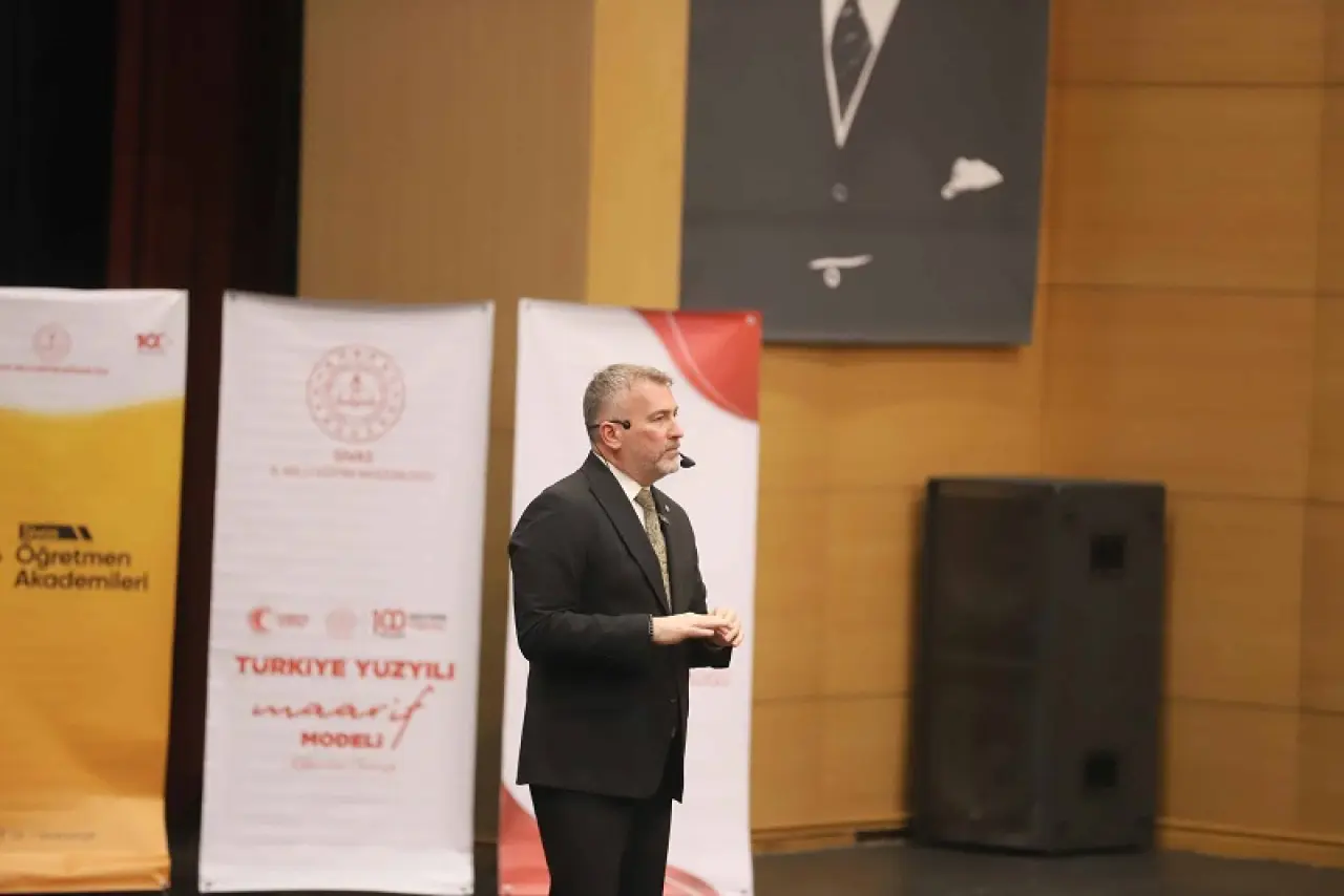 Program, saygı duruşu ve İstiklal Marşı’nın okunmasıyla başladı. Ardından kürsüye çıkan Prof. Dr. Cihad Demirli, Türkiye Yüzyılı Maarif Modelinin yalnızca bir müfredat değişikliği olmadığını vurguladı. Demirli, yeni modelin eğitim anlayışında köklü bir paradigma dönüşümünü hedeflediğini belirterek, “Bu model, öğrencinin akademik, sosyal ve duygusal gelişimini bir bütün olarak destekliyor,” dedi.