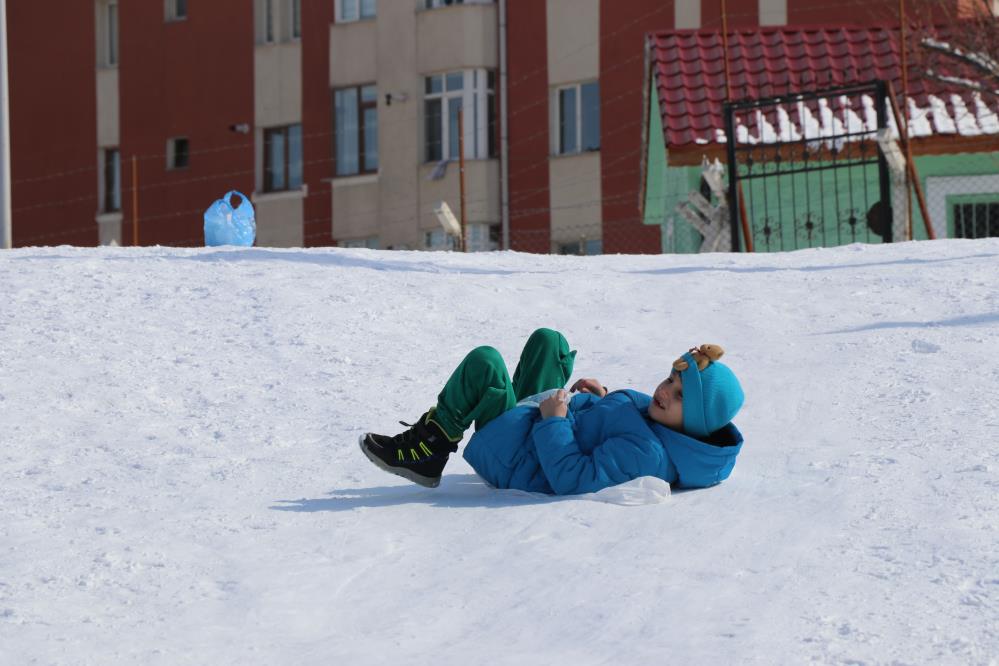 Sivas'ta çocuklar yağan karın tadını çıkardı. Sokaklara akın eden çocukların bir kısmı karda kayarken bir kısmı top oynayarak tatilin keyfini çıkardı.