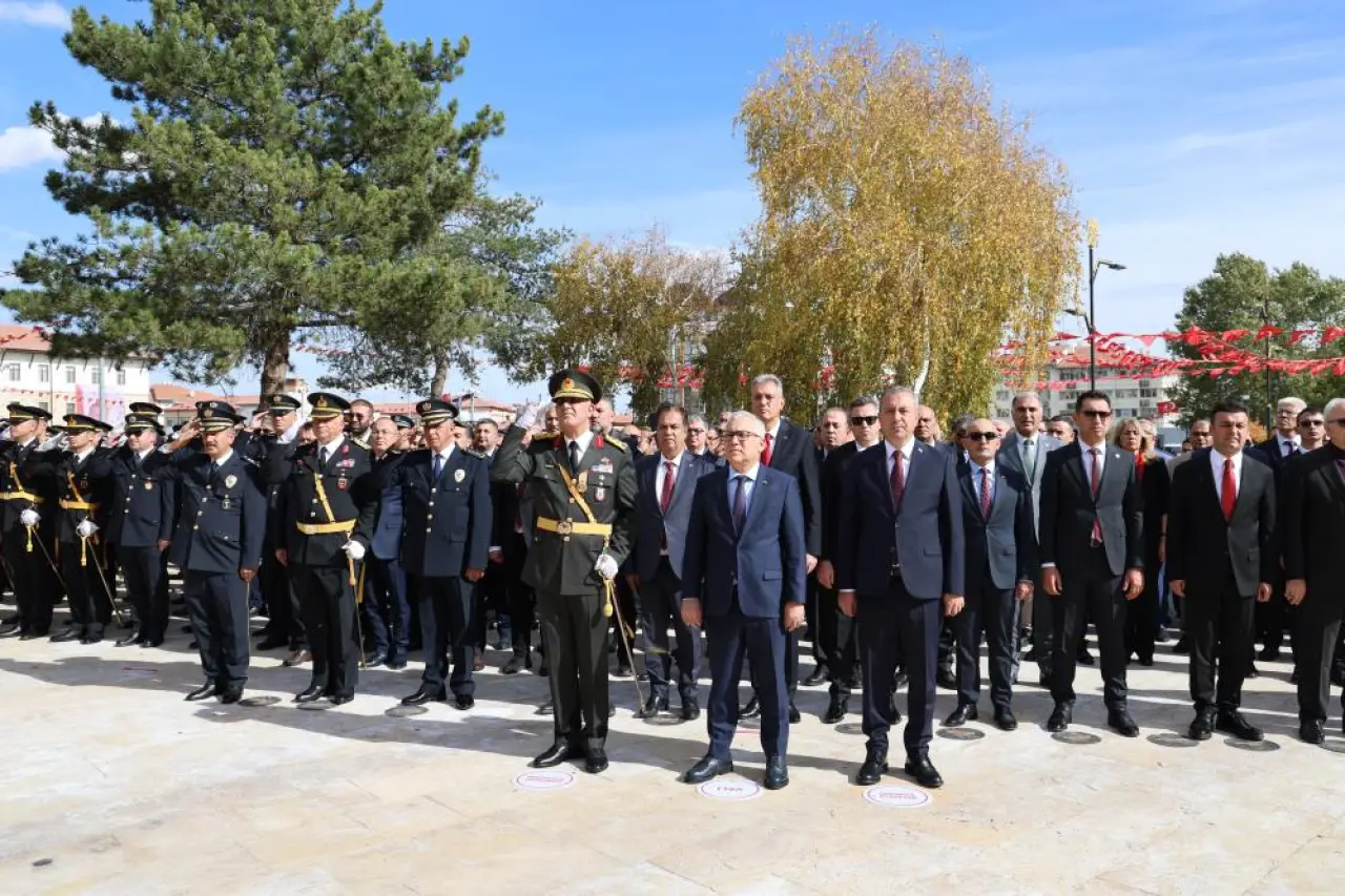 Saygı duruşu ve İstiklal Marşı’nın okunmasının ardından, Vali Şimşek, Tuğgeneral Alptekin ve Belediye Başkanı Uzun, Atatürk Anıtı’na çelenk sundu.