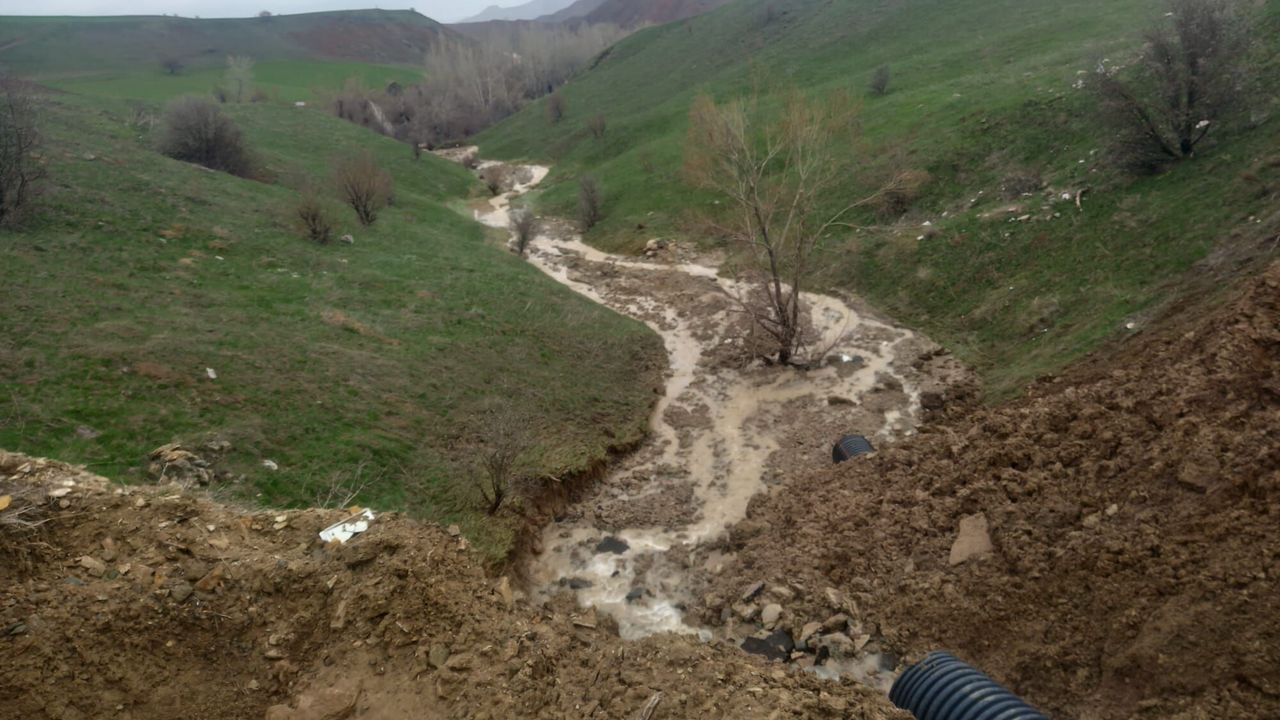 Gürlevik Dağı’ndan süzülen yoğun kar suları, köy yollarının kenarında adeta küçük göletler meydana getirdi. Asfaltın hemen dibinde biriken sular, yol zeminine zarar verme aşamasına gelirken, iki köy arasındaki trafik akışını da riske attı. Yolun daraldığı noktalarda biriken sular nedeniyle araçlar ilerlemekte güçlük çekerken, bölge sakinlerinin durumu bildirmesiyle büyük bir operasyonun düğmesine basıldı.