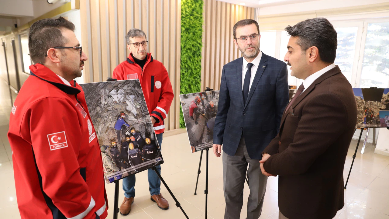 AFAD ve AKUB ekiplerinin felaketin yaşandığı illerde gerçekleştirdiği arama kurtarma ve diğer çalışmalarını konu alan sergiyi, Millî Eğitim Müdürü Fatih Erdoğan, AK Parti Merkez İlçe Başkanı Rüfet Arslan ve müdürlüğü personeli ziyaret etti.