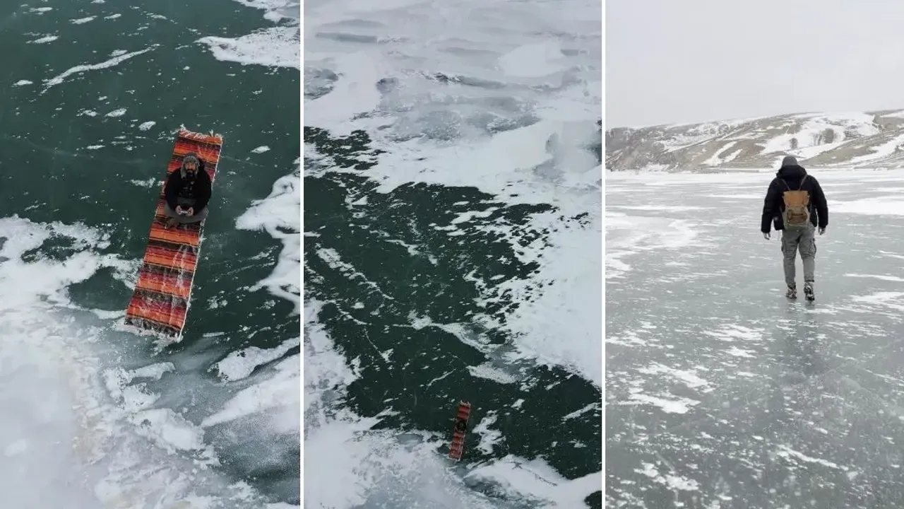 İncesu Barajı’nın yüzeyinin tamamen buzla kaplandığını gören Keçiyokuşu, tüm uyarılara rağmen donan gölün üzerine çıktı. Buzun kalınlığına güvenerek yürüyen Keçiyokuşu, soğuk havanın oluşturduğu eşsiz manzarayı kayıt altına aldı. Buzun kırılma riskine rağmen yanında getirdiği kilimi buzun üzerine seren Keçiyokuşu, baraj gölünün ortasında oturarak farklı kareler yakaladı.