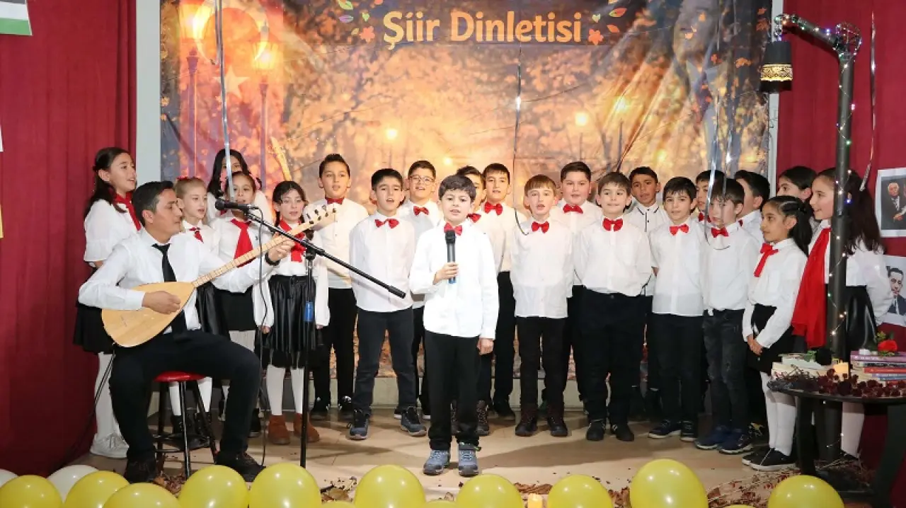 Minik öğrenciler, önceden belirlenen şairlerin eserlerini büyük bir özgüvenle seslendirdi. Şiir dinletisi boyunca öğrencilerin heyecanı ve sahnedeki performansı dikkat çekerken, veliler ve okul idarecileri de zaman zaman şiirlere eşlik ederek programa ayrı bir anlam kattı. Ortaya çıkan tablo, okul-aile iş birliğinin somut bir yansıması olarak salondan büyük alkış aldı.