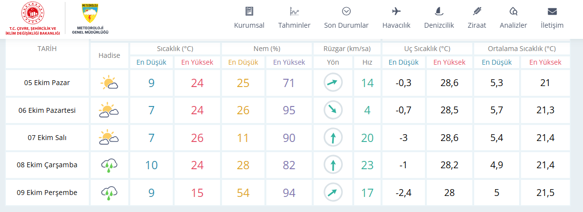 📅 06 Ekim Pazartesi: Parçalı bulutlu, sıcaklık 7/24°C.