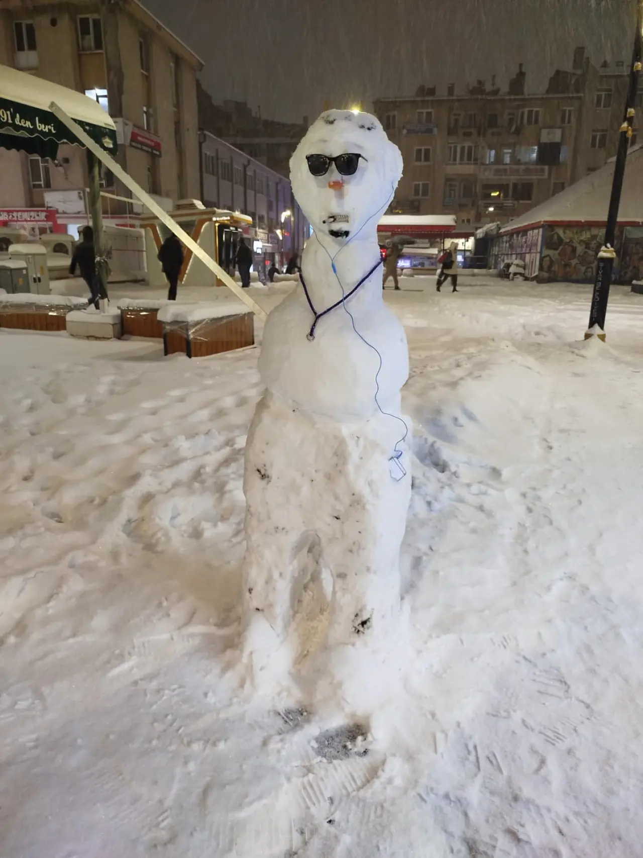 Sivas’ta yaşanan bu renkli anlar, kentin sert kış koşullarına rağmen dayanışma ve neşenin eksik olmadığını bir kez daha ortaya koydu. Kar yağışı günlük yaşamı zorlaştırsa da Sivas’ta esnaf kardan adam yaptı ve sokaklara farklı bir canlılık kazandırdı.