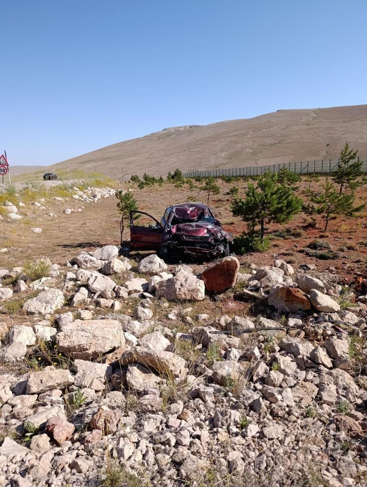 Edinilen bilgilere göre kaza, Gürün ilçesi Ziyaret Mevkii'nde meydana geldi. Y.K. (30) yönetimindeki 06 PGP 437 plakalı otomobil, sürücüsünün henüz bilinmeyen bir nedenle direksiyon hakimiyetini kaybetmesi sonucu yoldan çıktı. Savrulan araç, taklalar atarak şarampole uçtuktan sonra durabildi. Metal yığınına dönen aracın içindeki sürücü Y.K. ve yanında yolcu olarak bulunan babası A.K. (63) yaralandı.