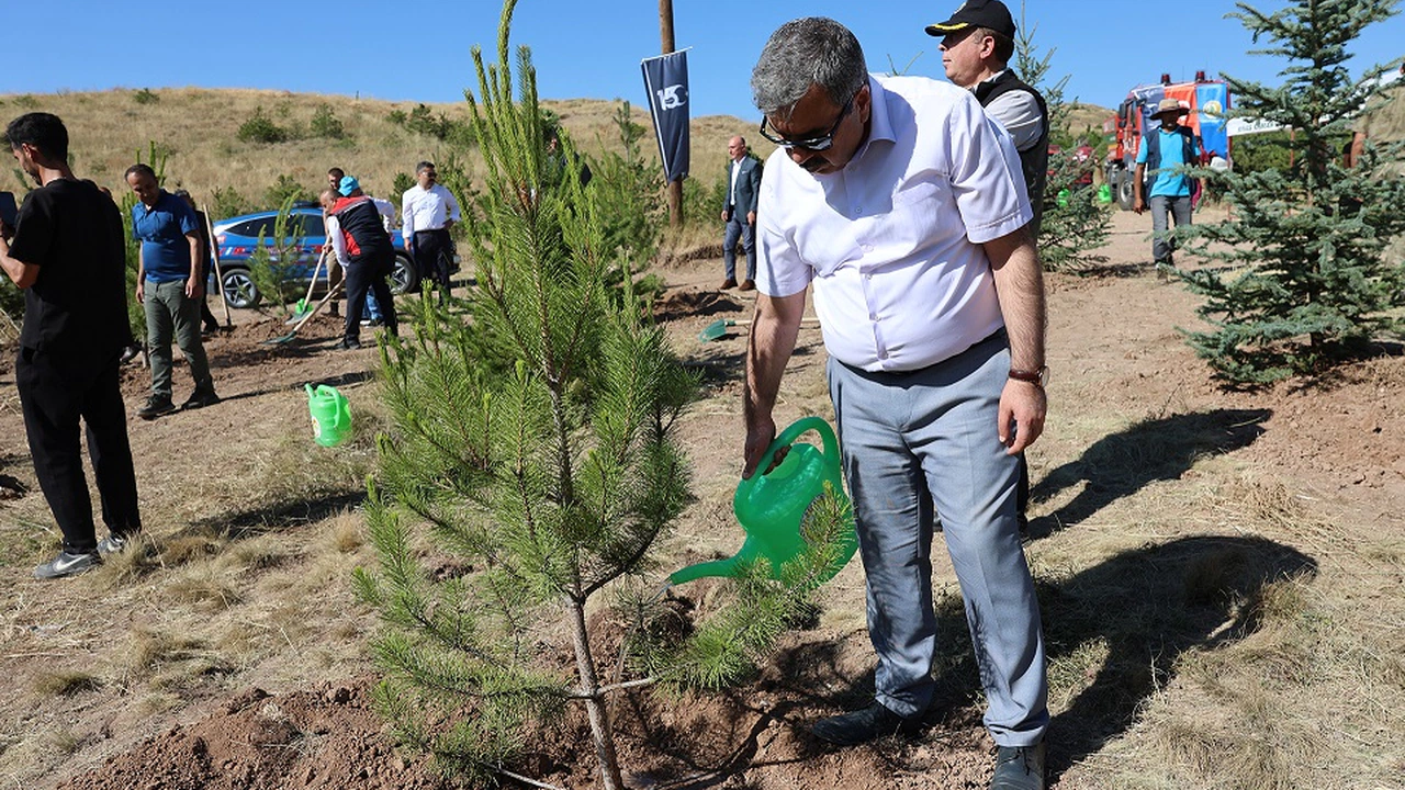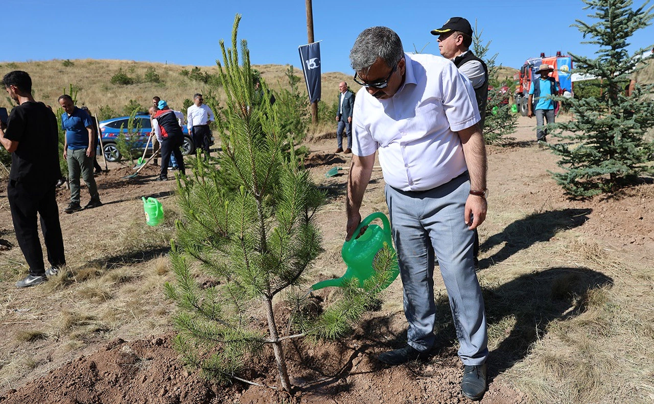 Etkinlik kapsamında bir çam ağacını toprakla buluşturan Prof. Dr. Kul demokrasimizin ve milli birliğimizin daim olması dilekleriyle diktiği ağaca can suyu verdi.