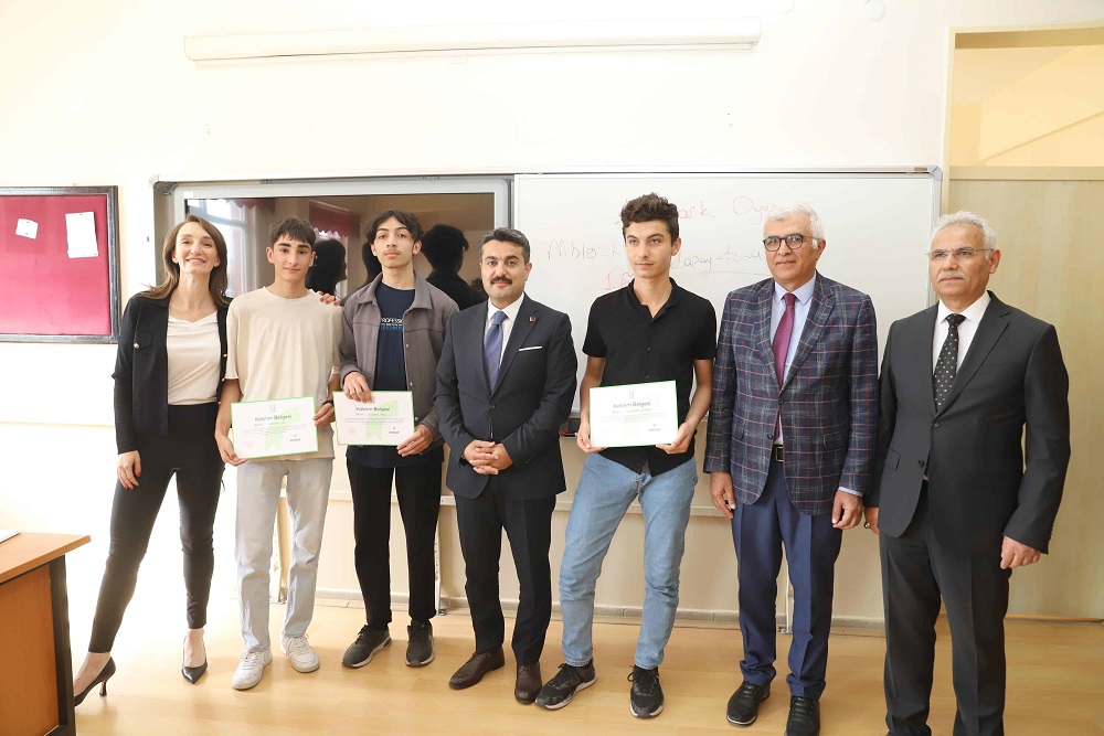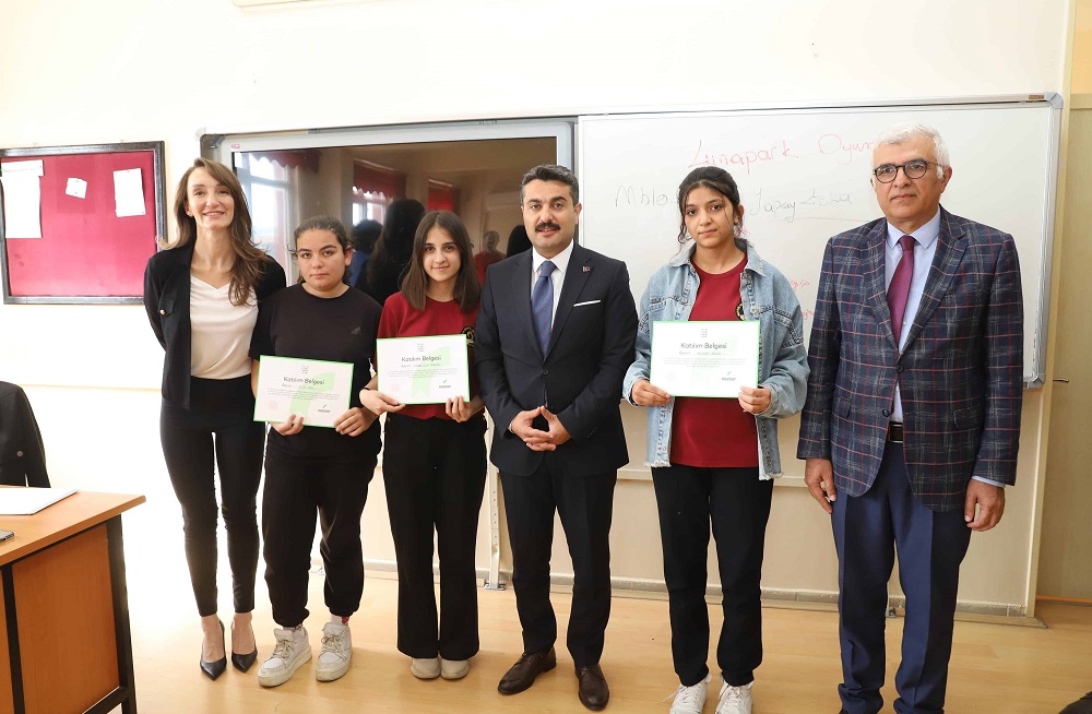 Bu tür projeler, sizlerin analitik düşünme, problem çözme ve yenilikçi fikirler üretme yeteneklerinizi geliştiriyor," diyerek öğrencileri tebrik etti ve belgelerini takdim etti. Başarılı eğitim programının hayata geçmesinde emeği olan öğretmenlere ve projenin paydaşı Reeder yetkililerine de teşekkürlerini sundu.